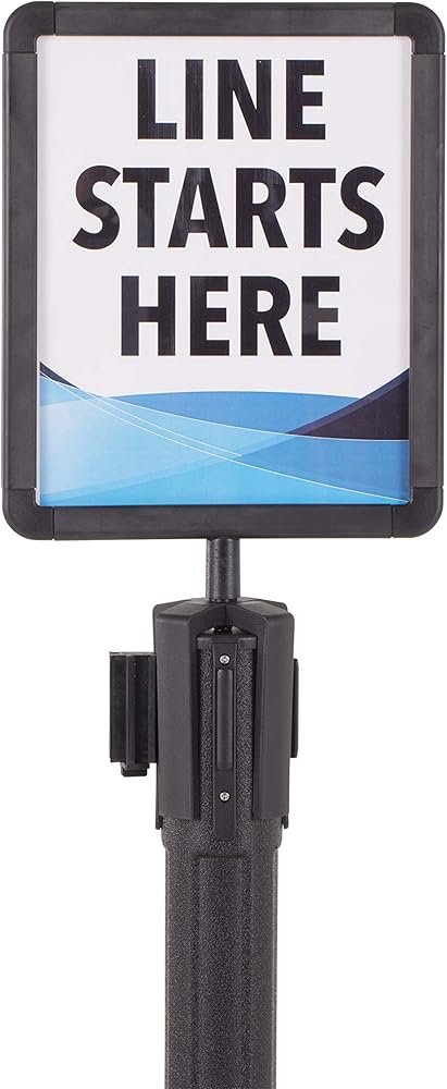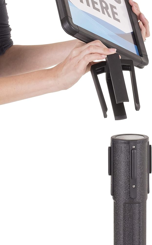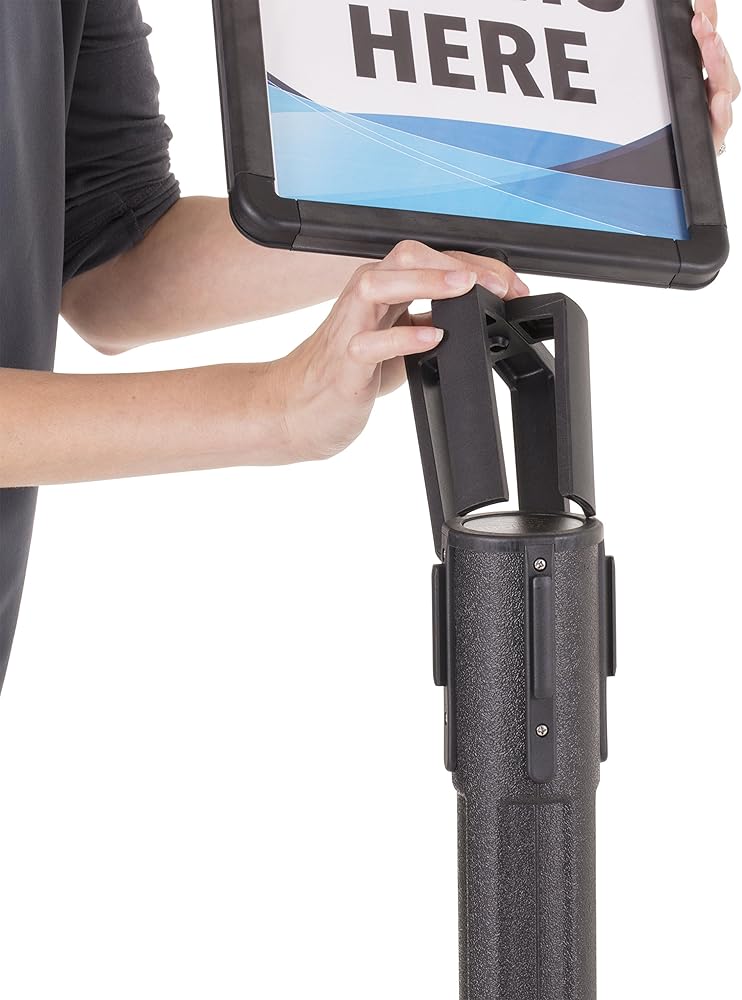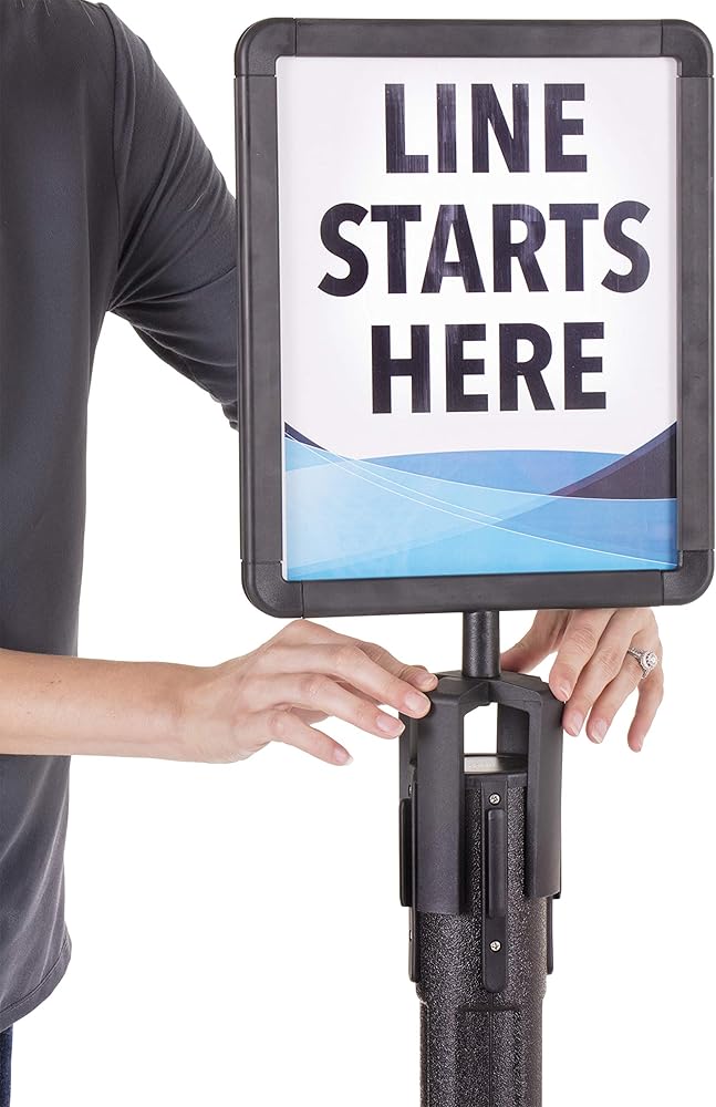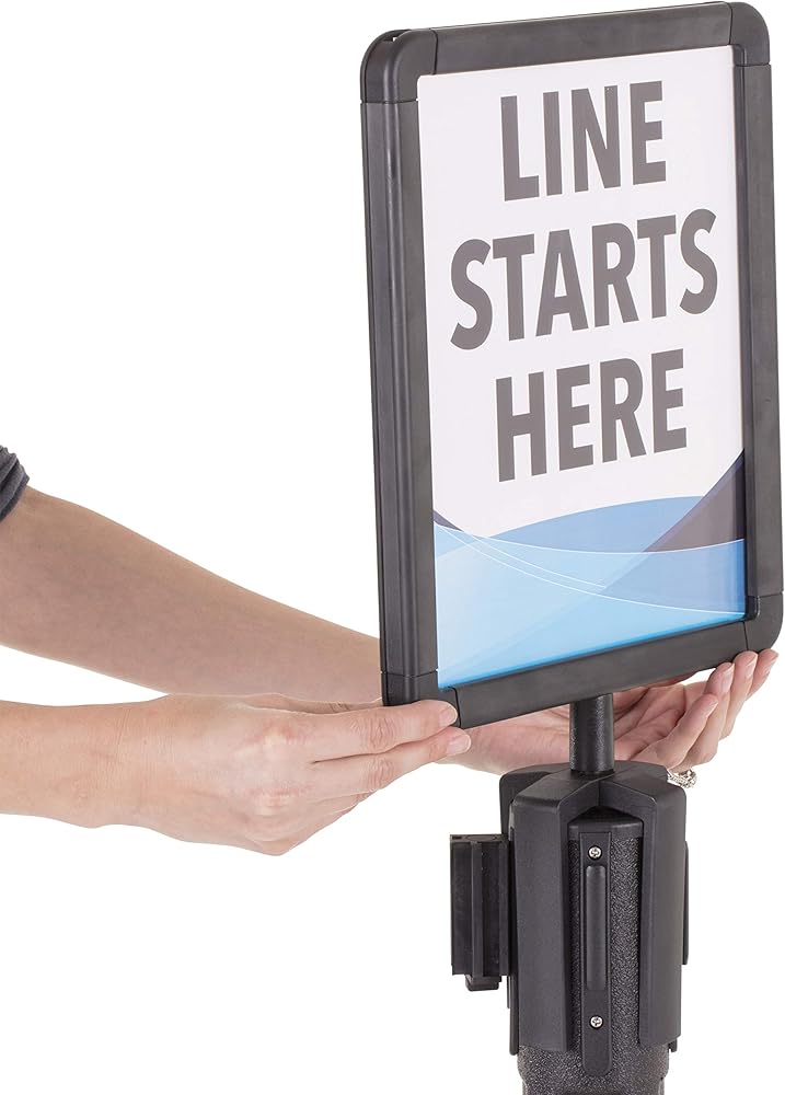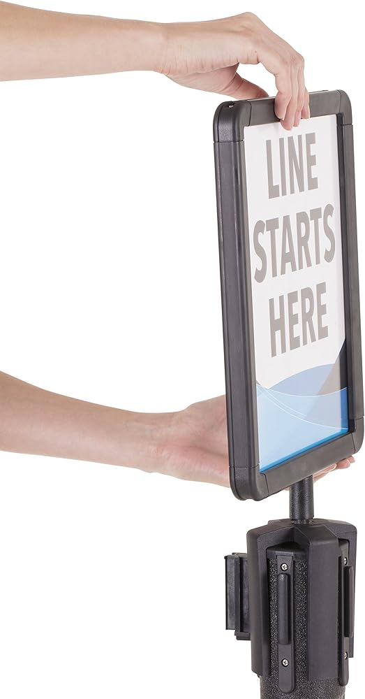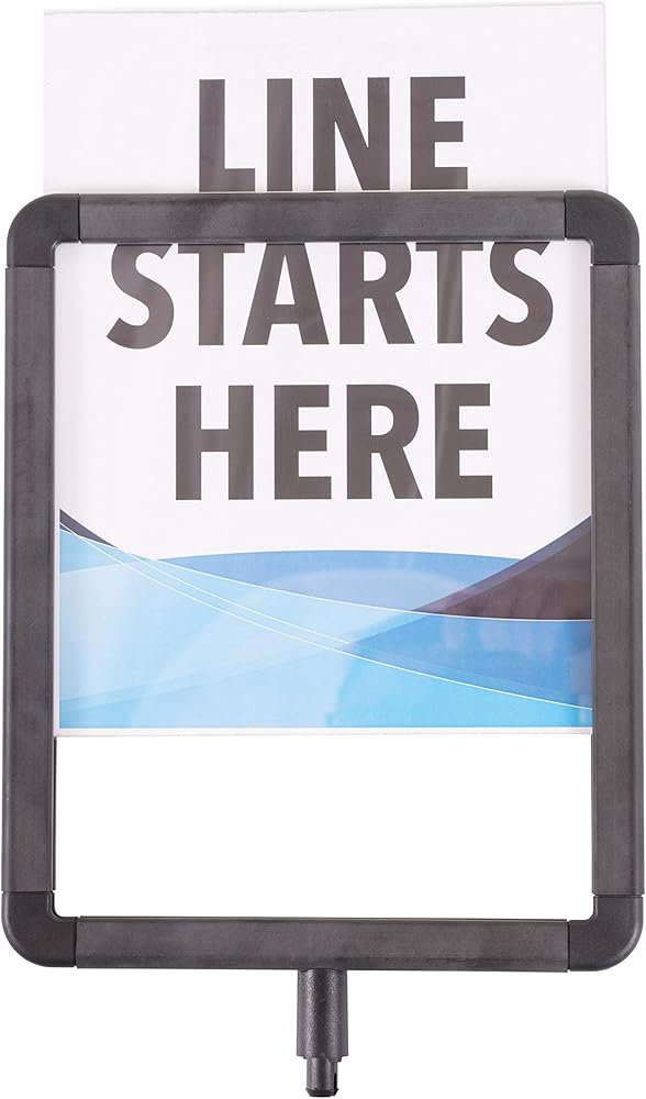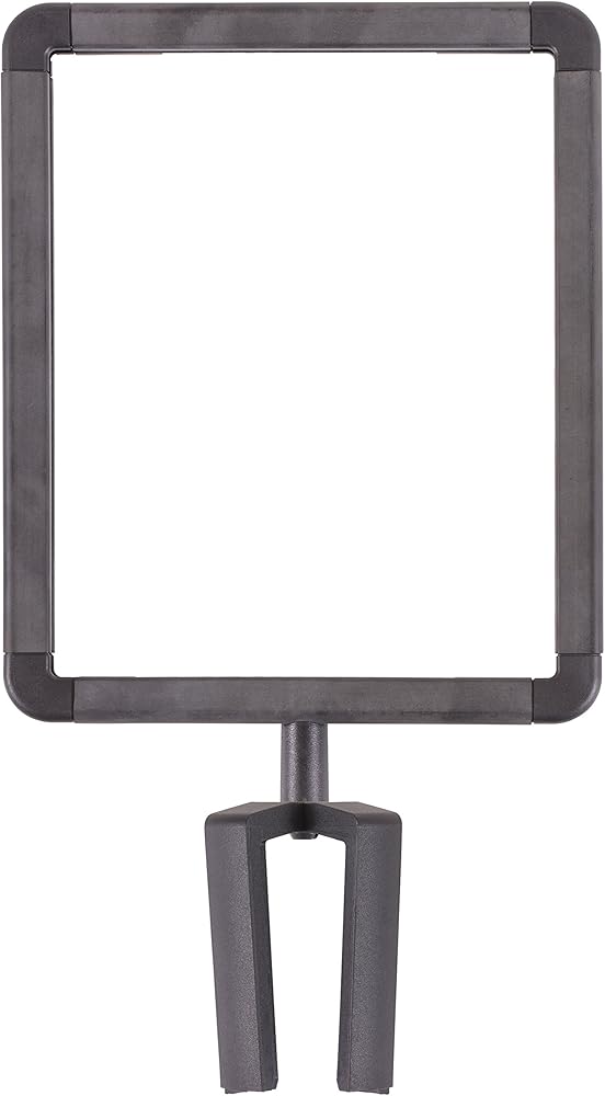 Share your important message quickly with the US Weight sign holder. The sign holder perfectly fits on top of your US Weight ChainBoss, Sentry or Sentry PLUS stanchion and allows you to advertise wherever temporary or permanent signage is needed. This sign holder is not compatible with other stanchions. Promote specials or instruct consumer traffic through your queue using the plastic frame with a visual area of 8-inch x 10-inch. The frame accepts 8.5-inch x 11-inch documents and features a Plexiglass cover to keep your sign protected and supported. Create your own messages and easily change them out as you desire with the US Weight ChainBoss/Sentinel/Trek Sign Holder.