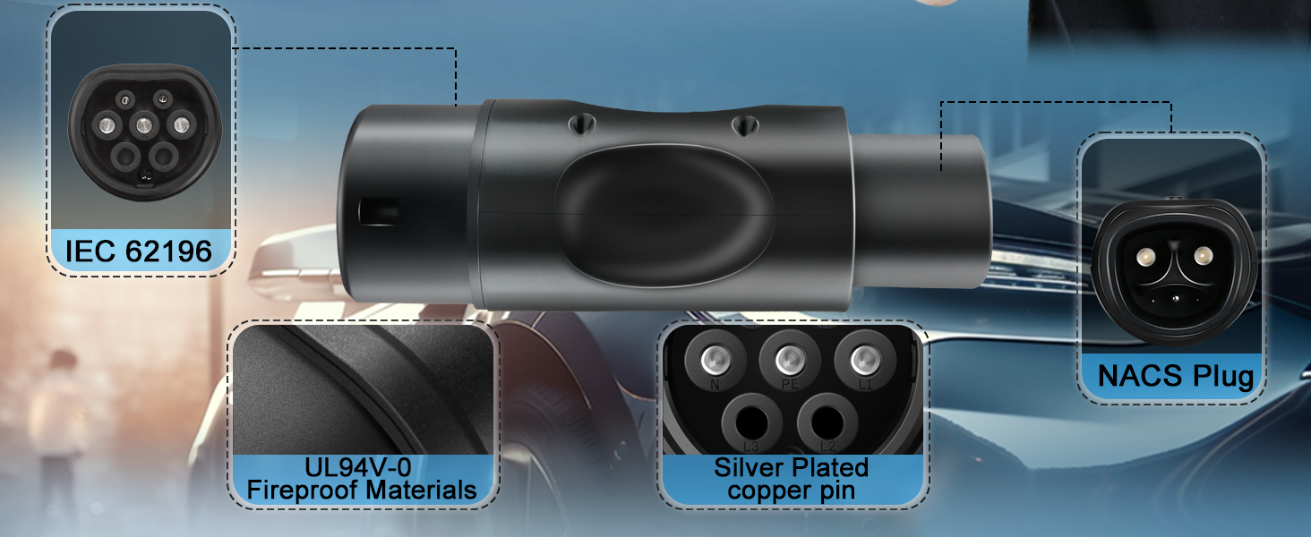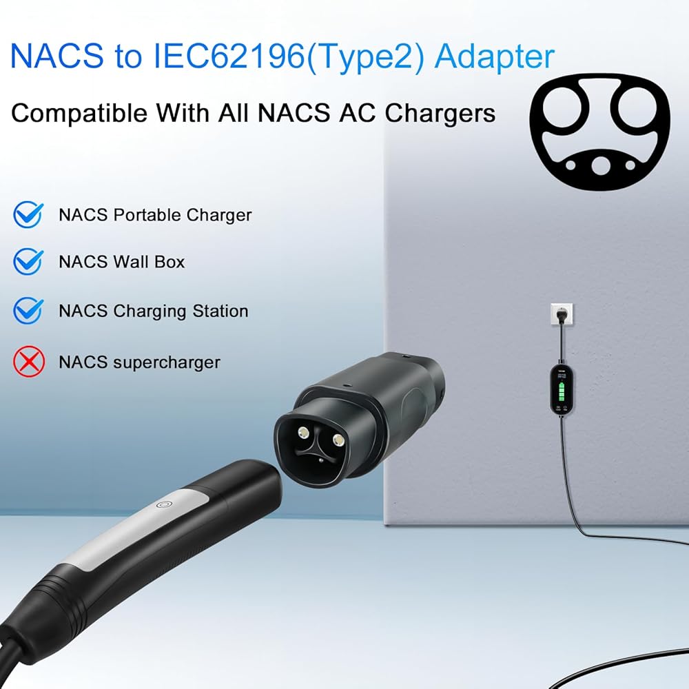 For Type2(IEC62196) EVS: The GUWIEY Fit for NACS to Type2 adapter is compatible with all IEC62196 electric vehicles and PHEVs. Supports charging up to 32A 240V, designed to connect type2 vehicles to NACS chargers.