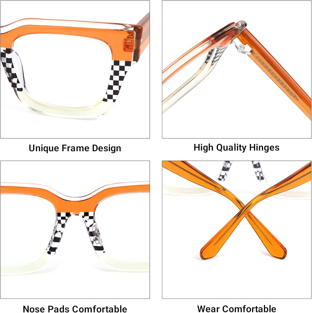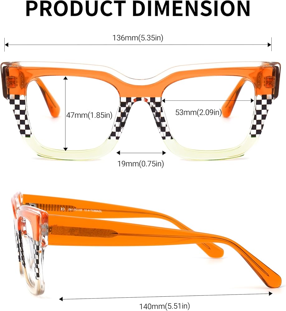 [Comfort Fit Design] Crafted from high-quality acetate,these glasses are lightweight at only 33.8g,ensuring comfort throughout the day.The fixed nose bridge maintains a secure fit, making them perfect for extended wear without discomfort