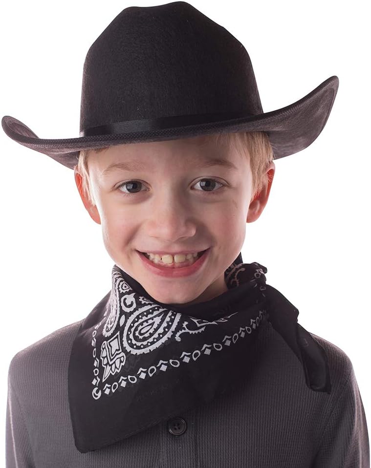 PERFECT FIT FOR ALL AGES- Hat circumference is 22" while bandanna is 21.5" x 21.5". Both will stay on, even during the most intense cowboy adventures.
