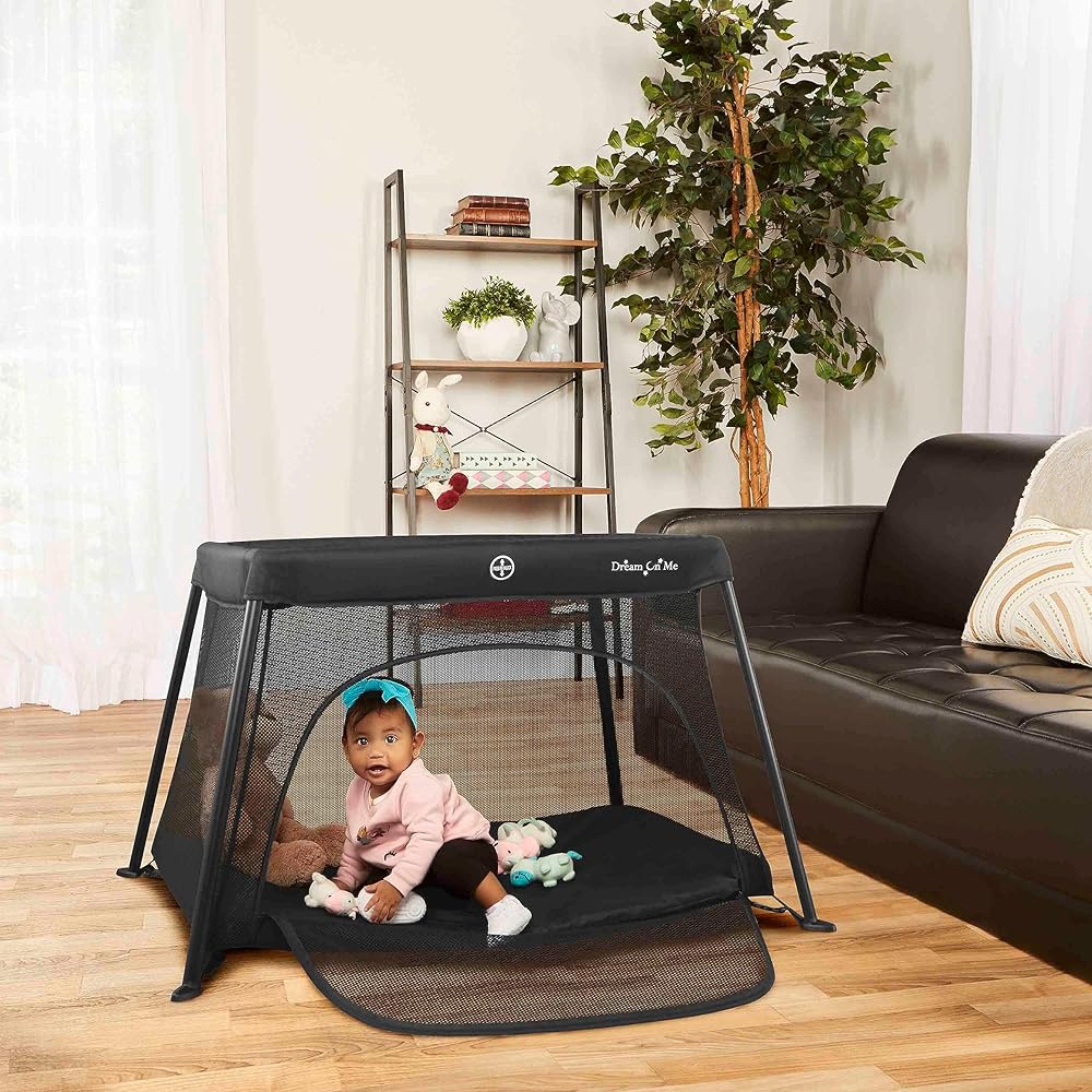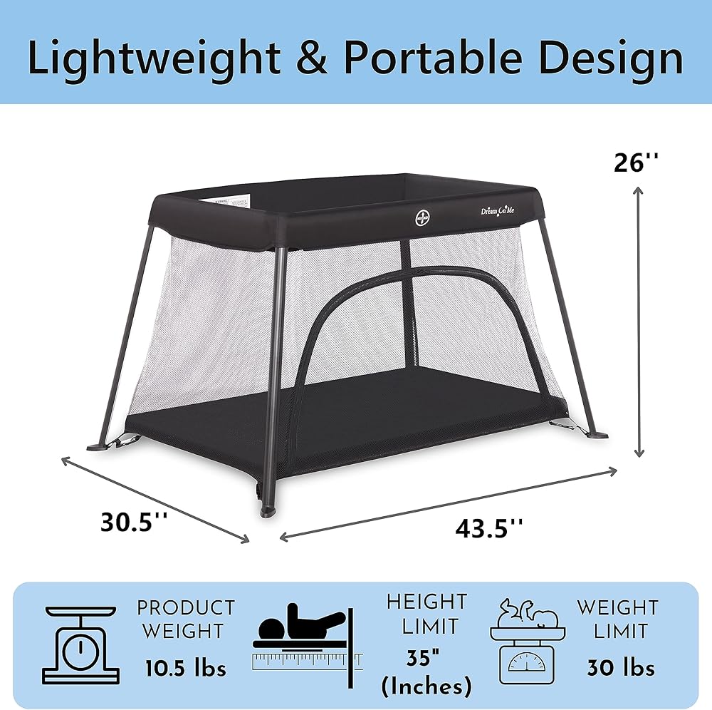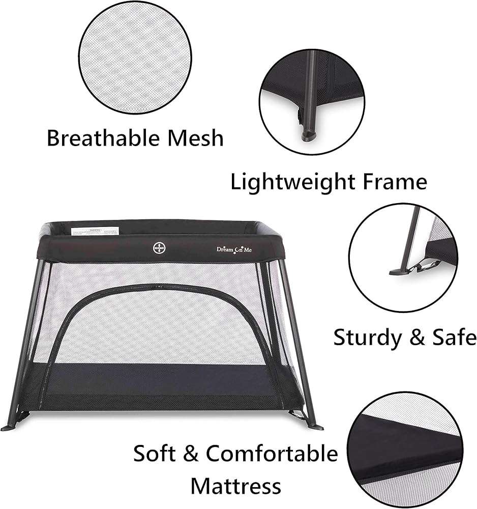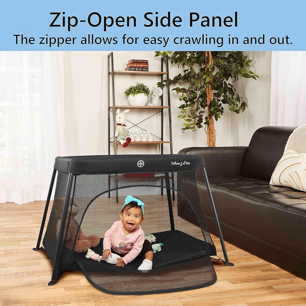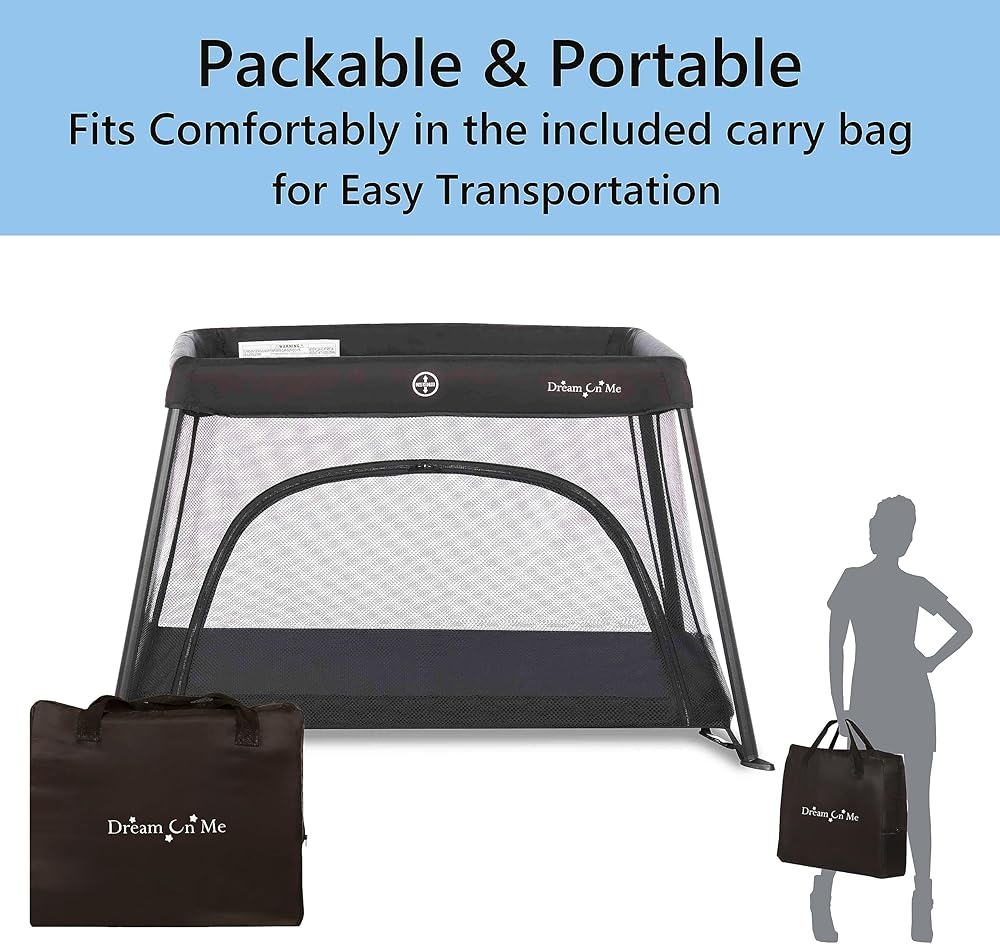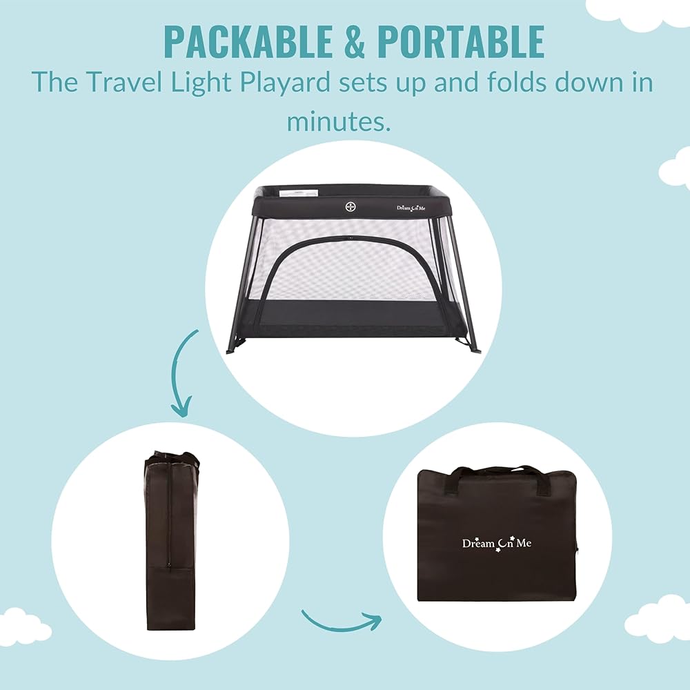 Dream On Me Travel Light Baby Playard with Zipper Access Door, Breathable Mesh Sides with Soft Comfortable Mattress, Easy Fold Design with Travel Carry Bag, Compact Space Saving Design - Black