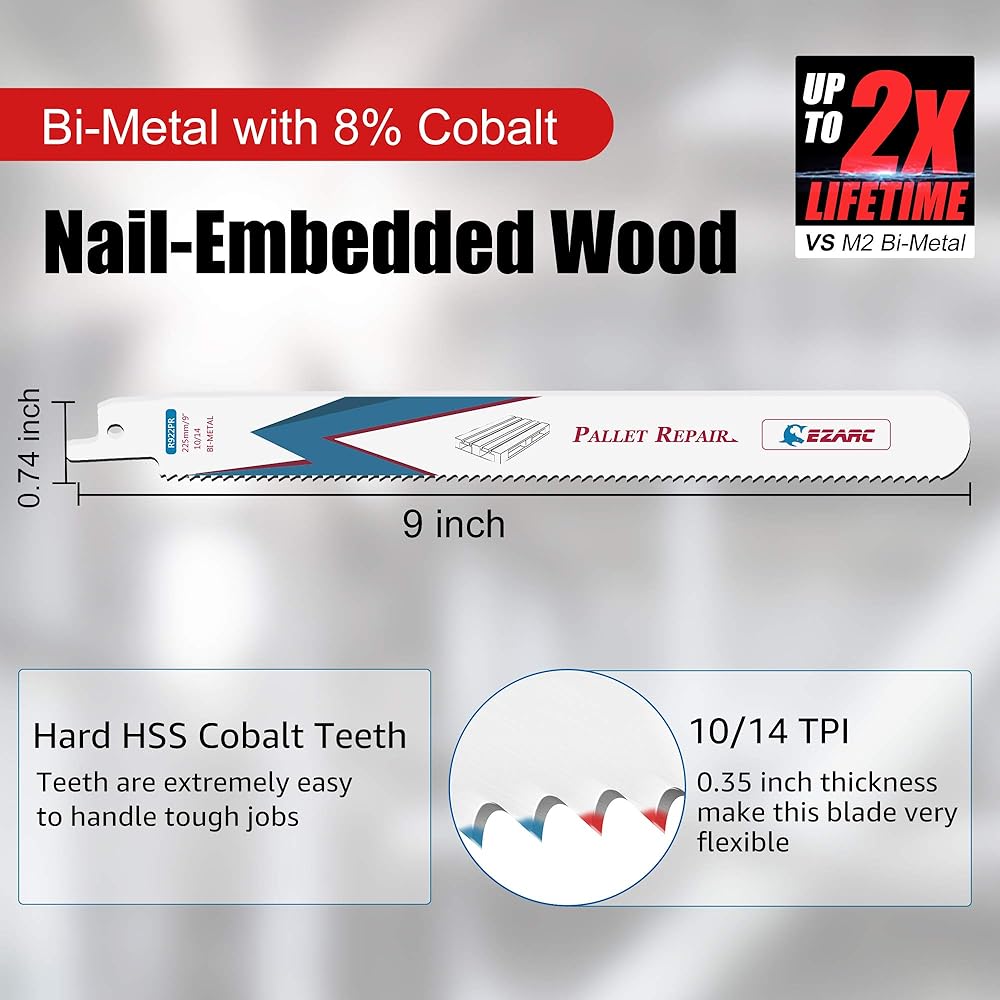 EZARC Reciprocating Saw Blades Set 9 Inch, Bi-Metal with Cobalt Nail Embedded Wood, Pallet Repair, Multi-Purpose Demolition Blades for Reciprocating/Sawzall Saws/Sabre Saws 10/14TPI (10-Pack)