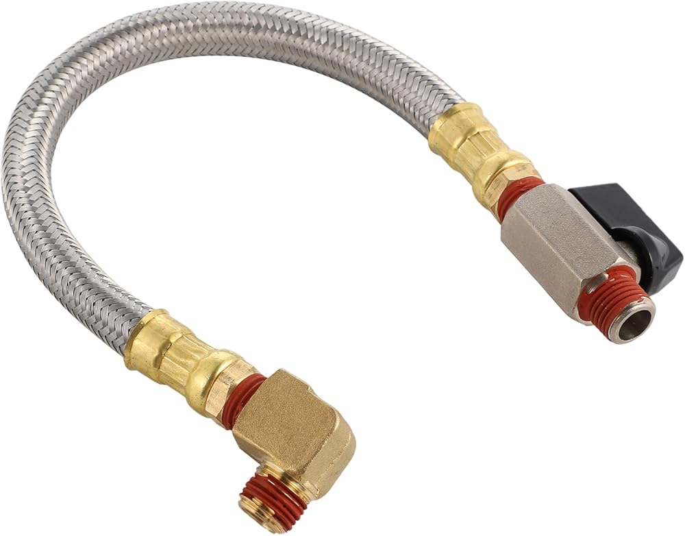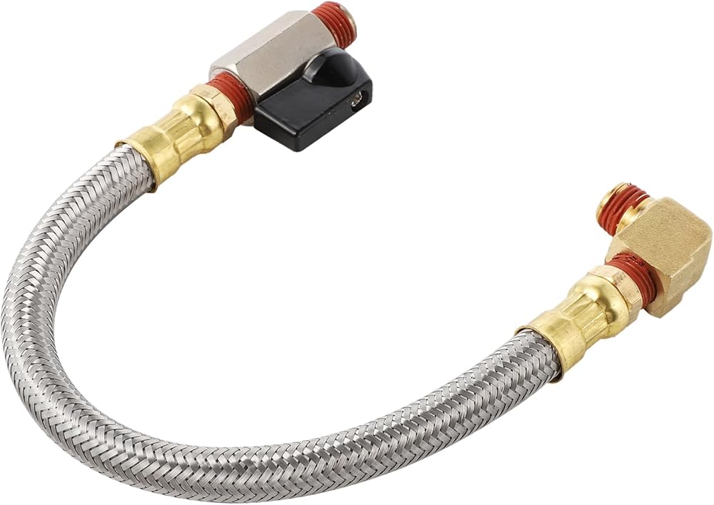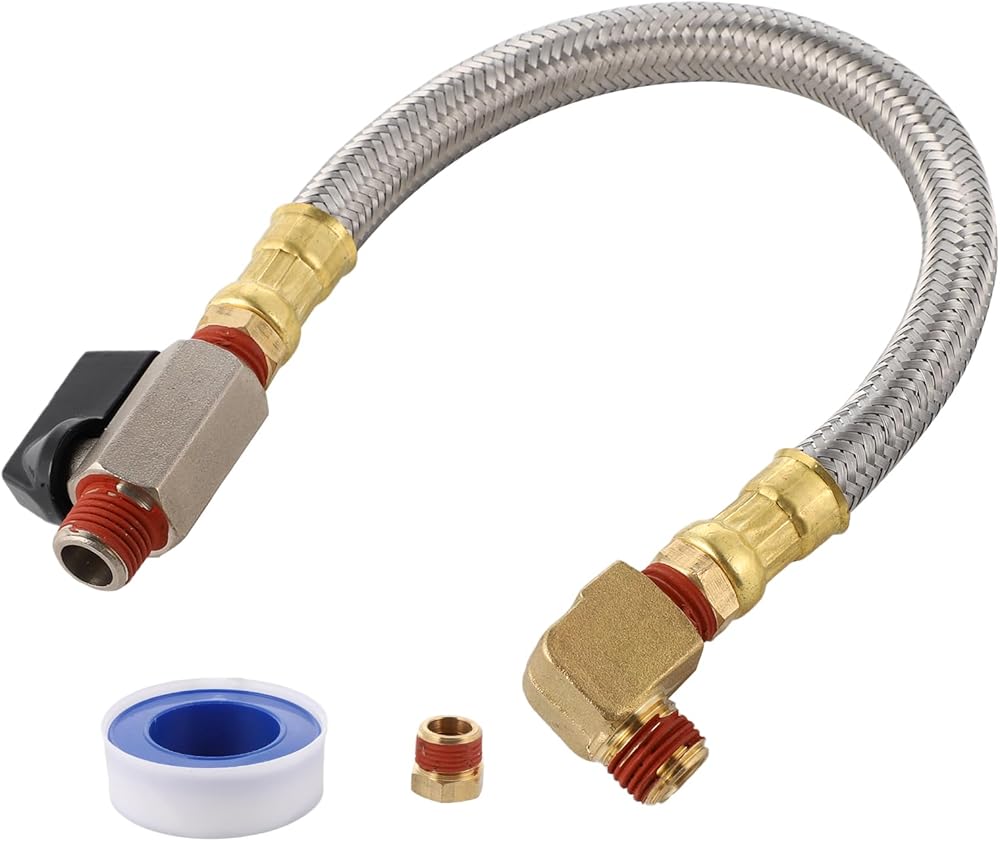 10 Inch Braided Steel Hose 1/4 Inch NPT,1/4" to 3/8" Brass Adapter Drain Valve and Elbow Fitting for Air Compressor with Thread Seal Tape
