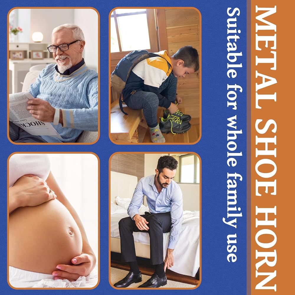 SHOE WEARING ARTIFACT - 3-PIECE SET OF METAL SHOE HORN: Long shoe hornl is like a robotic arm, protecting our back and hands, reducing the number of times we bend over and touch the shoes directly while wearing. The 16.5 inch shoe horn long handle is suitable for elderly and pregnant women to wear shoes while sitting at home, while the 7.5 inch small shoe horn is suitable for children and men to wear shoes when traveling as a backup
