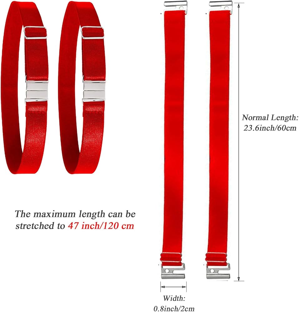 Approx 23.6 inches/60 cm of lenght, 0.8 inches/2 cm of width. Super elastic, each strap can be stretched up to 47 inches/120 cm. Suitable for plus size ladies, even with thunder legs.