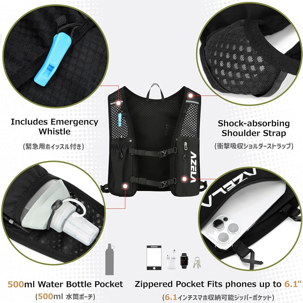 🏃♂️ NO SHIFTING: This running vest backpack is designed according to ergonomics, featuring an adjustable waist strap and highly elastic chest strap. It can accommodate most body types while maintaining high stability. This reflective hydration vest is suitable for running, traveling, camping, fishing, hunting and wearing at concerts, exhibitions or any situation where you want to ensure the safety of your belongings