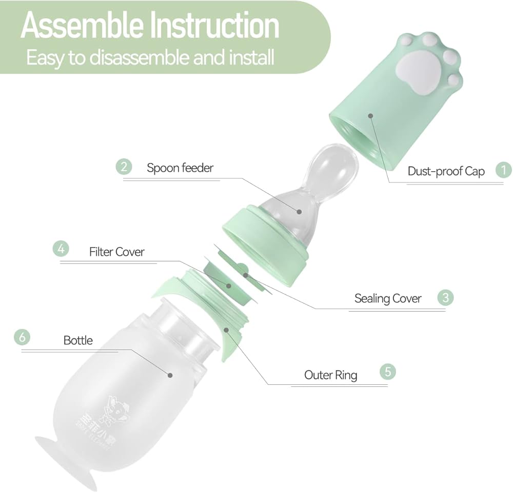 Safe Material: SANFE ELEPHANT baby Spoon feeder is made of high quality food grade PP + silicone. BPA-free, environment-friendly. It will not hurt the baby's delicate mouth.