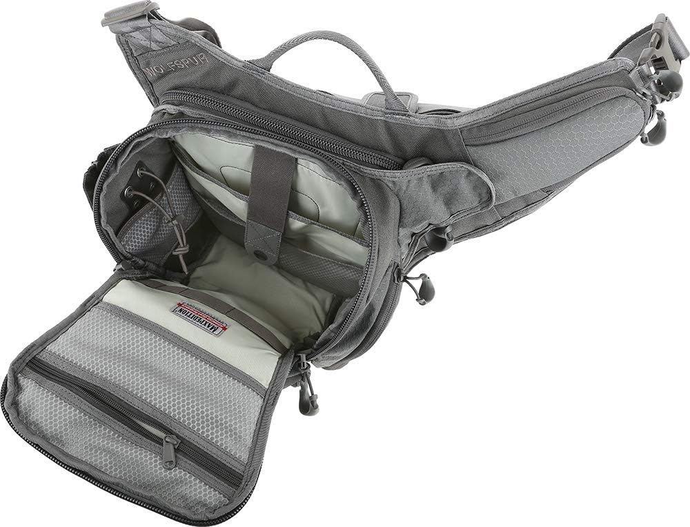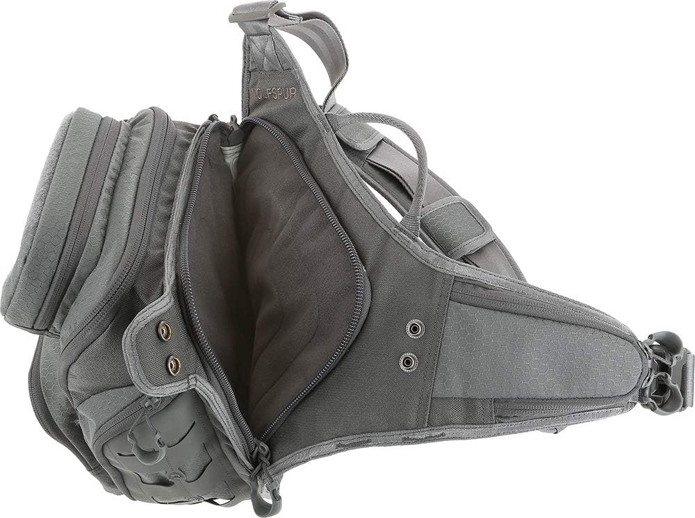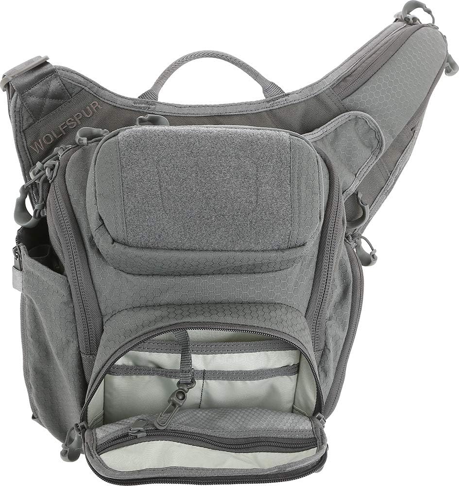 The Wolfspur v2. 0 is a crossbody shoulder bag optimized for concealed carry. The rear CCW compartment is fully loop-lined and has a 15" zipper opening for unobstructed access. The main compartment of the pack is lockable with a padded pocket sized to fit most tablets. The Wolfspur v2. 0 also has a side expandable water bottle pocket that can accommodate a 32 oz. Nalgene water bottle.