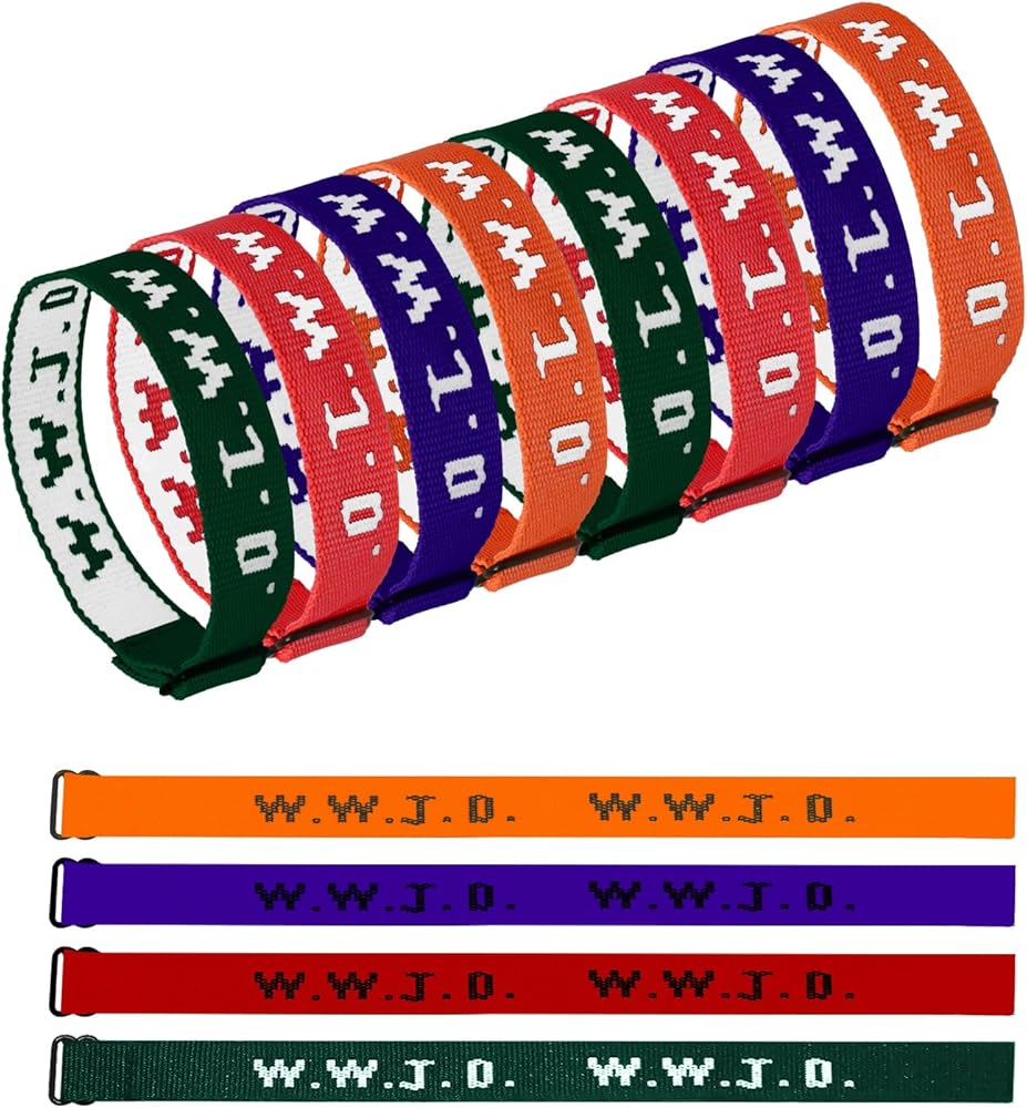 W Bracelets PACKAGE: There are 12pcs Jesus Bracelet, total 6 colors, light pink, light blue, black, white, light purple, light green, per colors 2pcs,Wearing Bracelet can constantly remind you to seek direction
