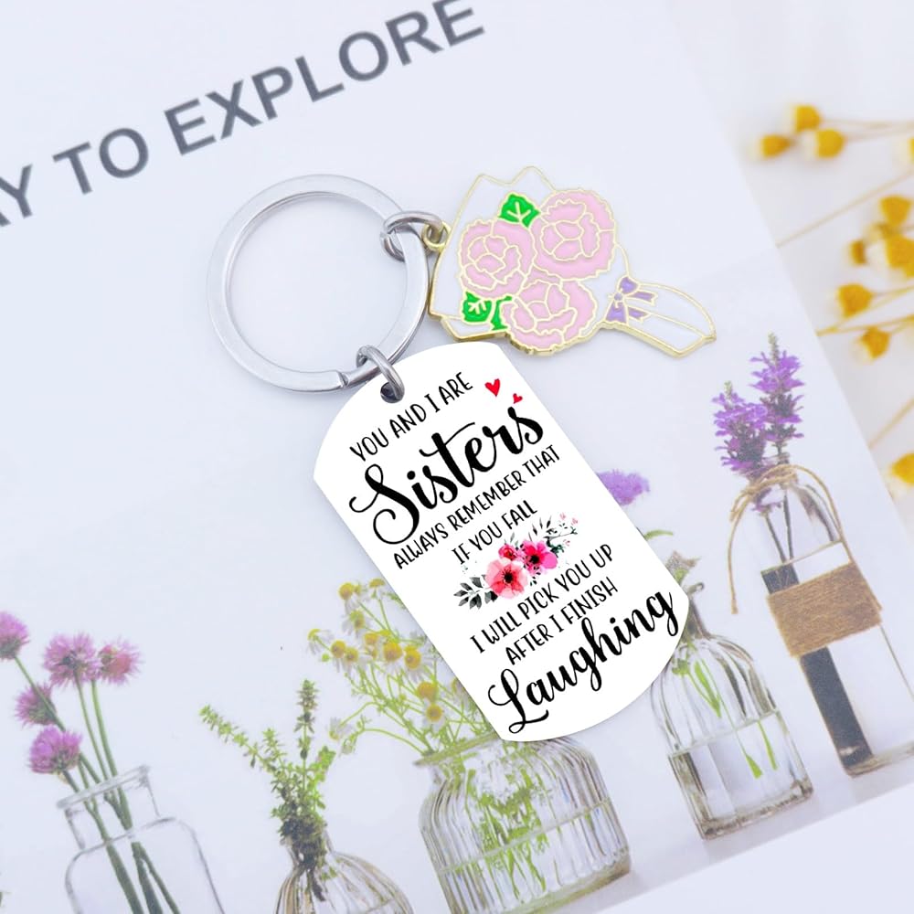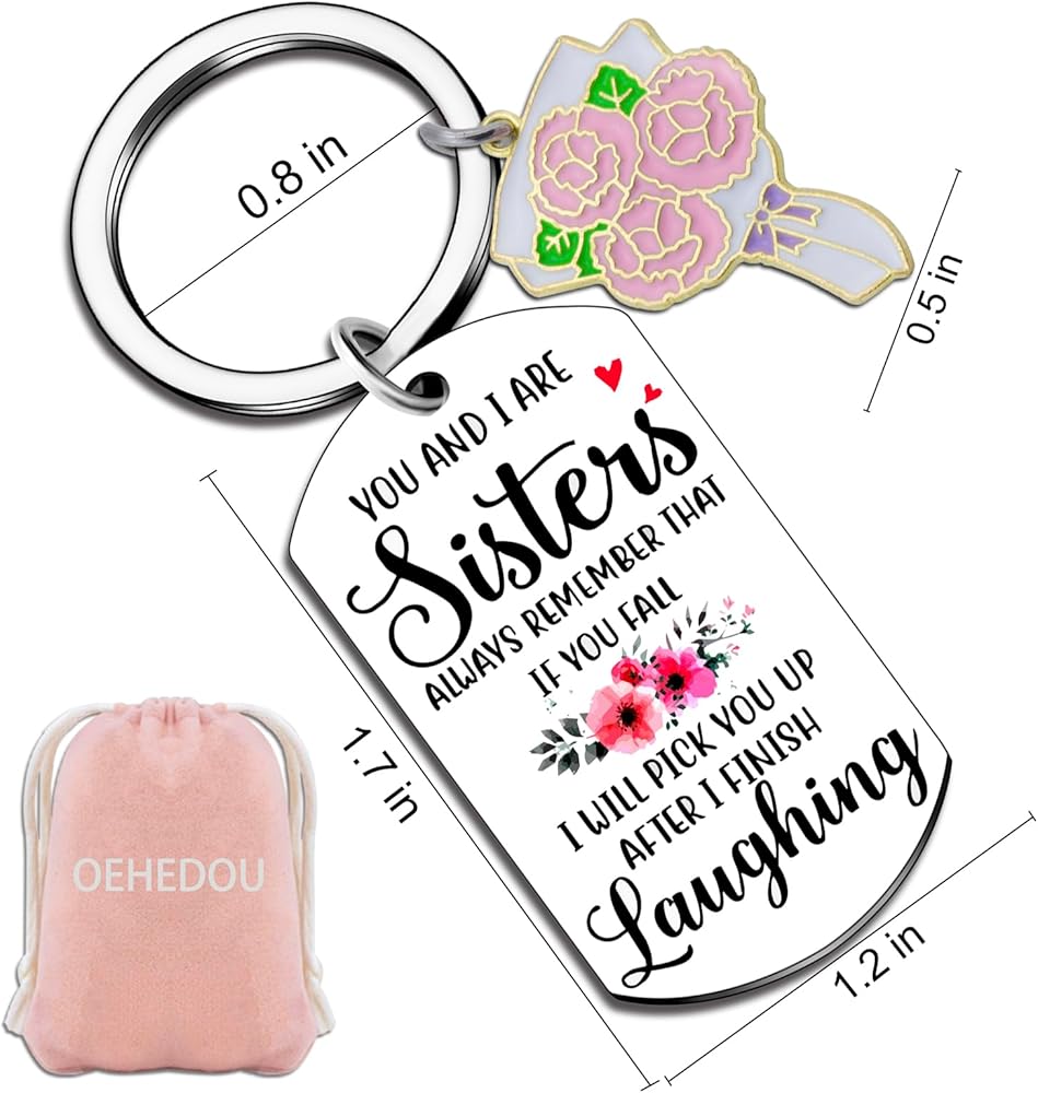 Funny Sister Gifts, Funny Sister Keychain,Stocking Stuffer Birthday Gifts For Sister -- With Engraved: “ You And I Are Sisters, Always Remember That If You Fall, I Will Pick You Up After I Finish Laughing” , Funny Sisters Gifts From Sisters, For Your Big Or Little Sister On Her Birthday, Graduation, Wedding, Christmas, Thanksgiving Day, New Year, Valentine's Day, Family Party, Anniversary, Christmas, Etc...