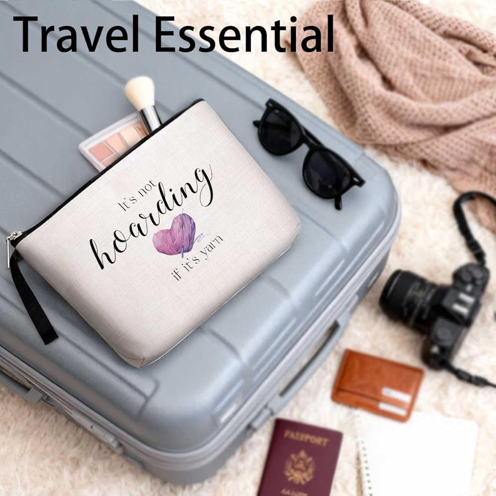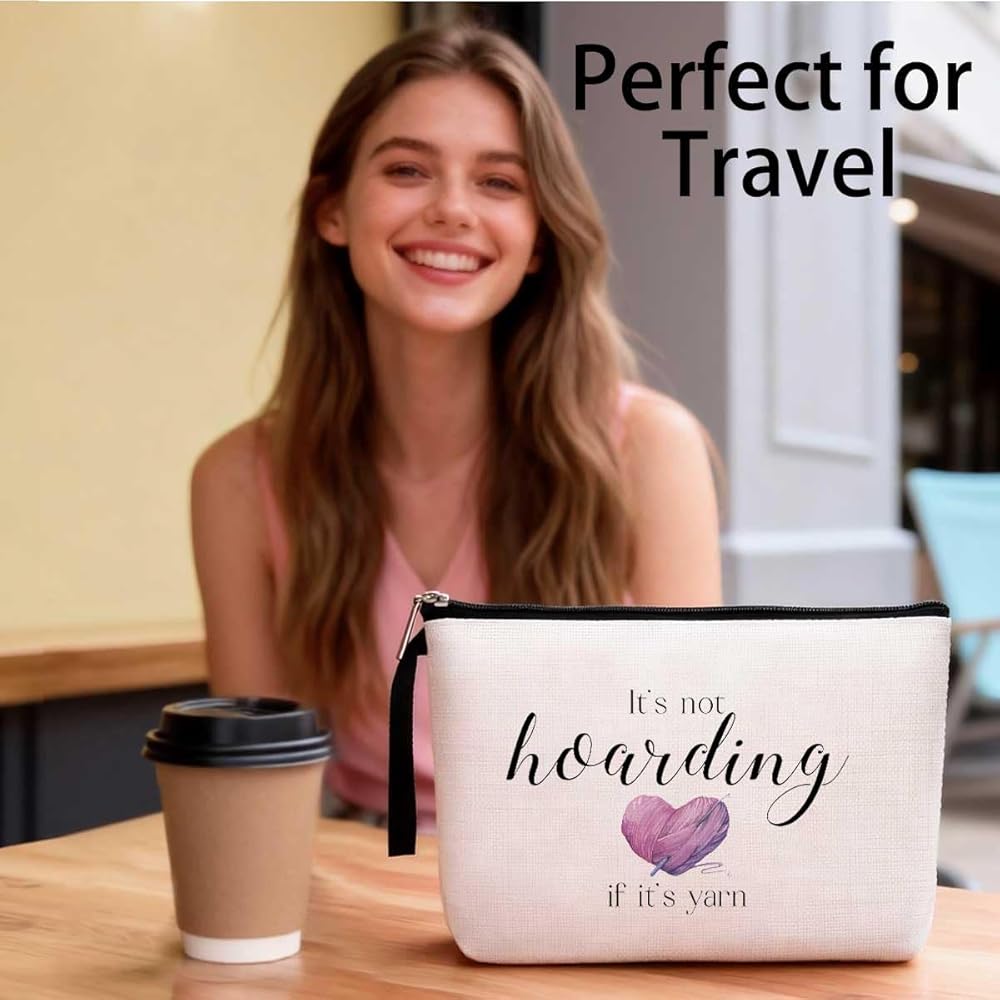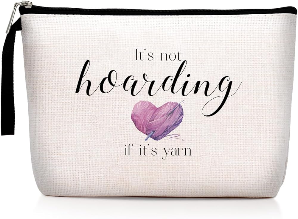 Funny Gifts for Crocheting Gifts Christmas Birthday Gifts Humorous Novelty Present for Knitting and Crochet Beginner Crochet Lovers Knitting Bag - It's not Hoarding if it's Yarn, Crochet Makeup Bag