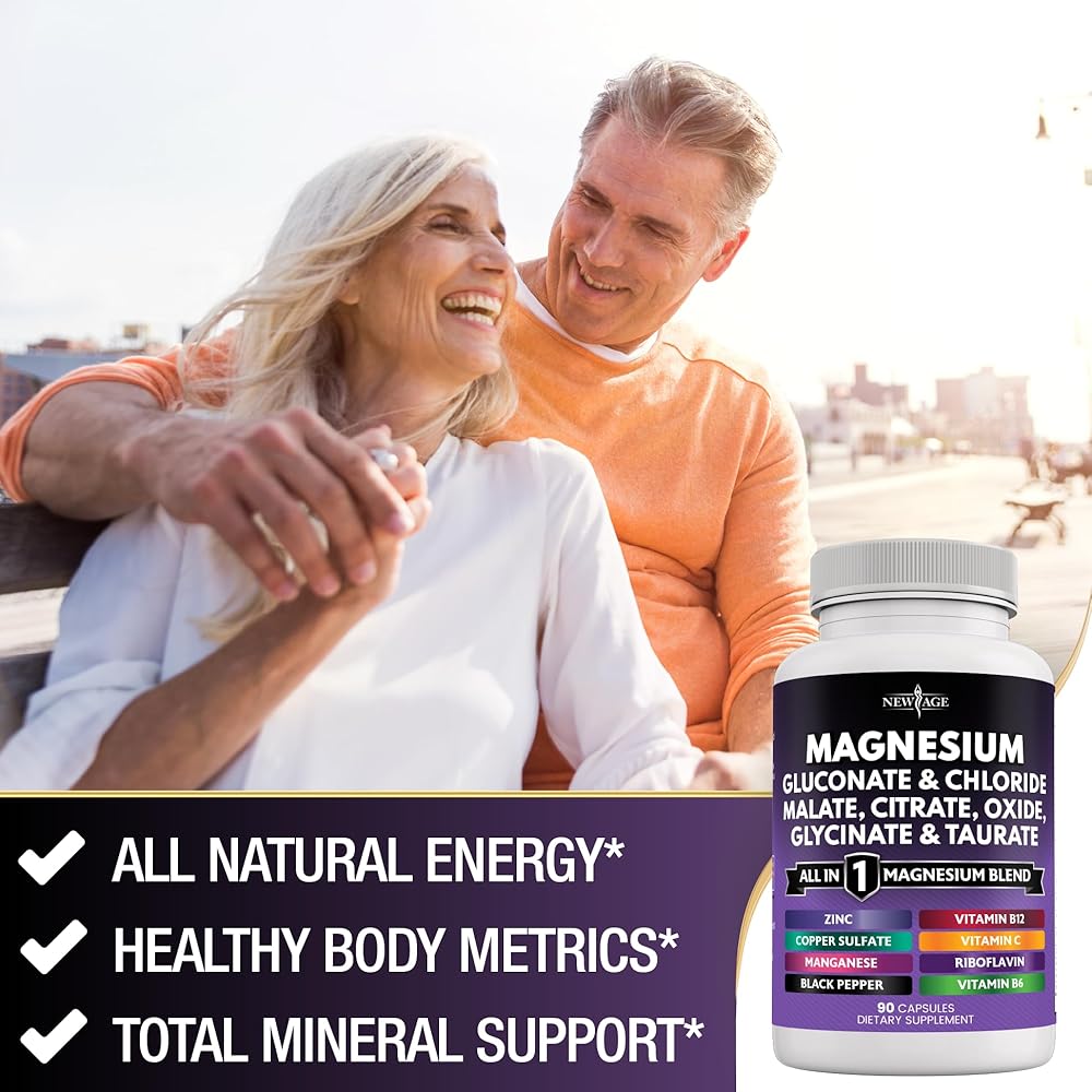 NEW AGE Magnesium Supplement -Powerful Glycinate Citrate Malate Oxide Taurate Aspartate Gluconate Orotate & Mag Chloride Manganese Bone Health and Bone Strength, Joint Support - 90 Count