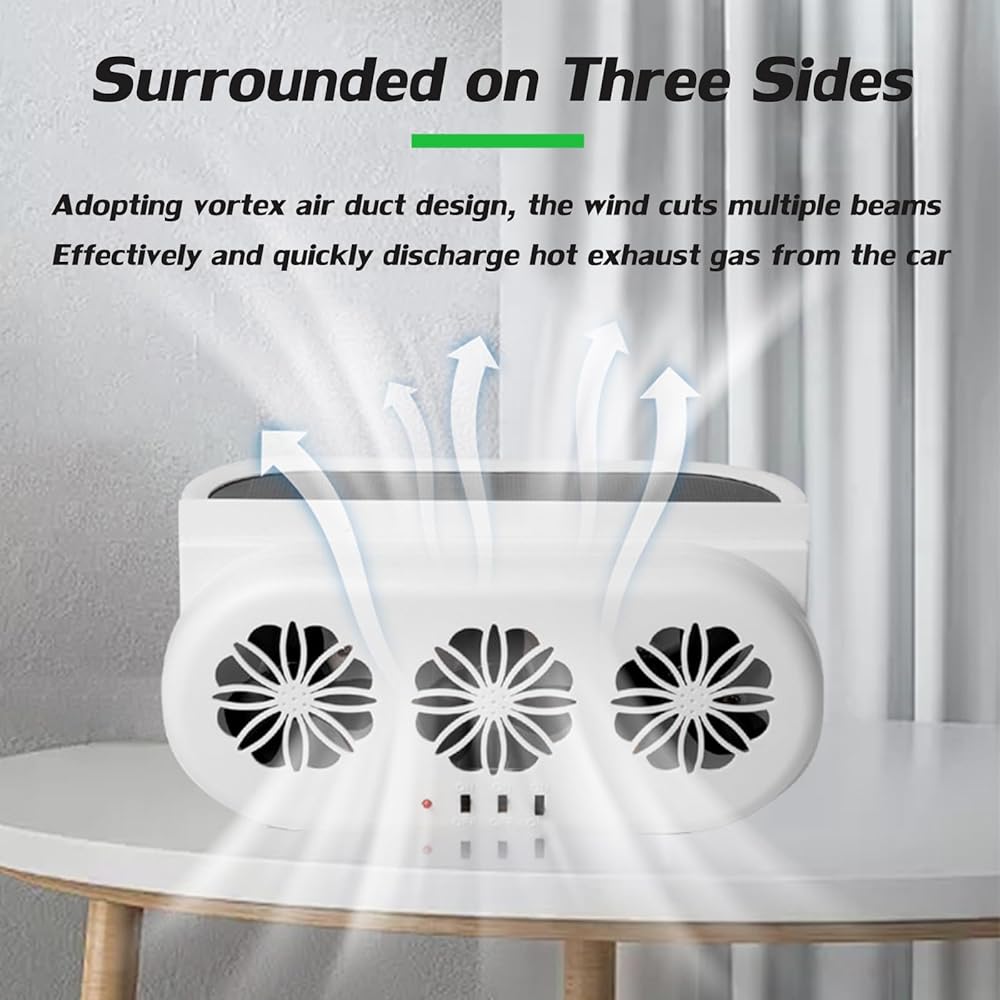 ☘️【High Speed Exhaust】Three duct and three motor design of our car window echaust fans improve the exhaust speed effectively. It adopts a vortex suction air duct design, and the wind cuts multiple beams to effectively and quickly discharge the hot air and exhaust gas in the car. solar powered exhaust fan rotates at 5000 revolutions per minute.