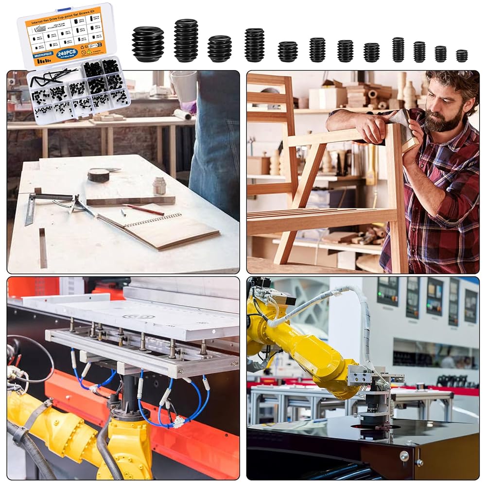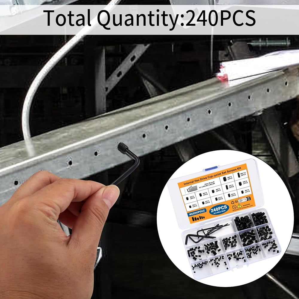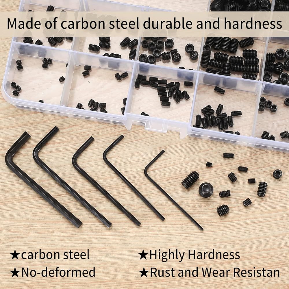 The set screw assortment kit is made of high quality carbon steel, which is strong and durable for long-term use.