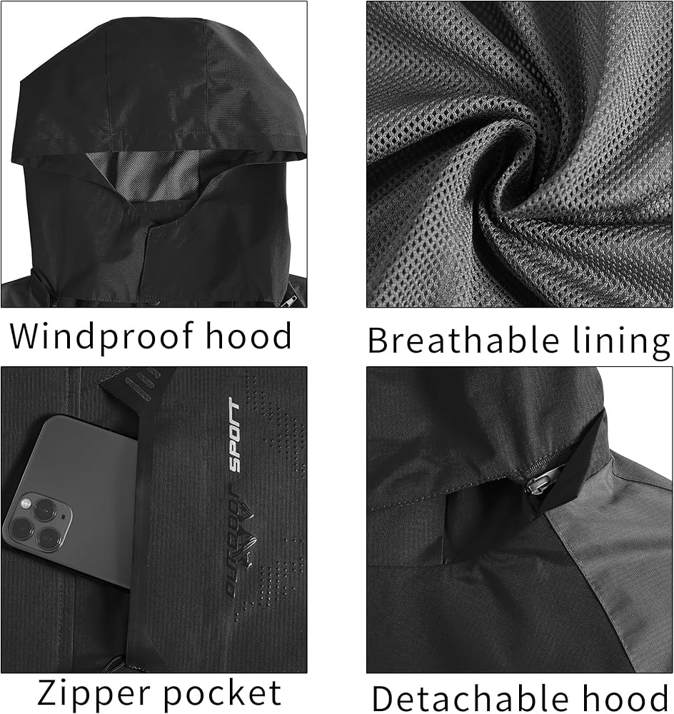 【Design Details】:Be prepared for extreme on-trail weather with windproof detachable hood and adjustable velcro cuffs proof the wind and rain.