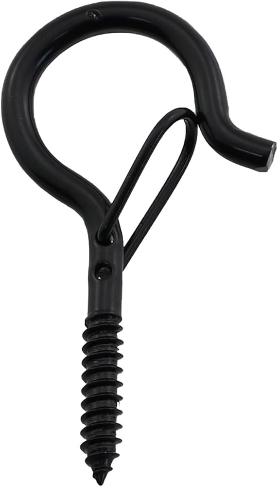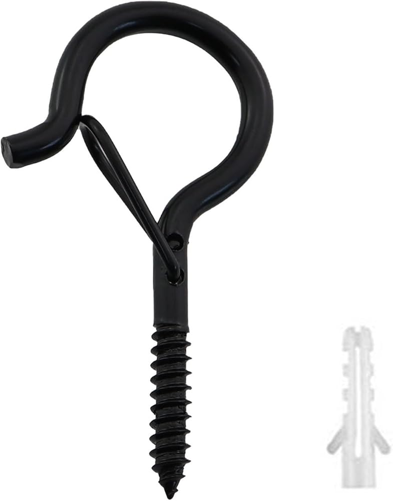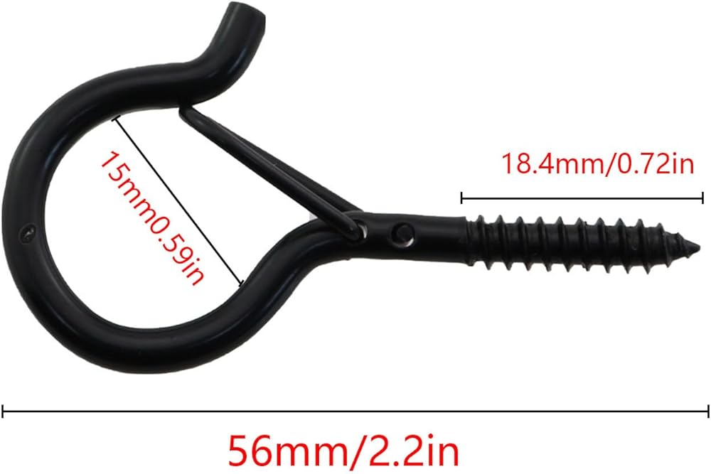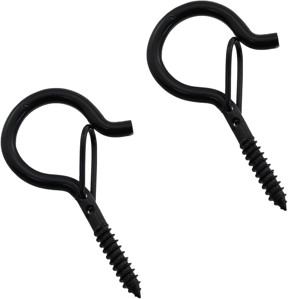 12PCS 52x26mm Black Q Spring Hook Metal Eyelet Hook Windproof Screw Hook Colourful Light Plant Hook for Hanging String Light Plant Christmas Decoration Lanterns