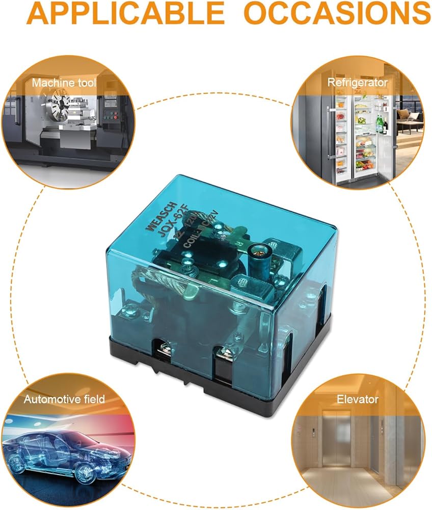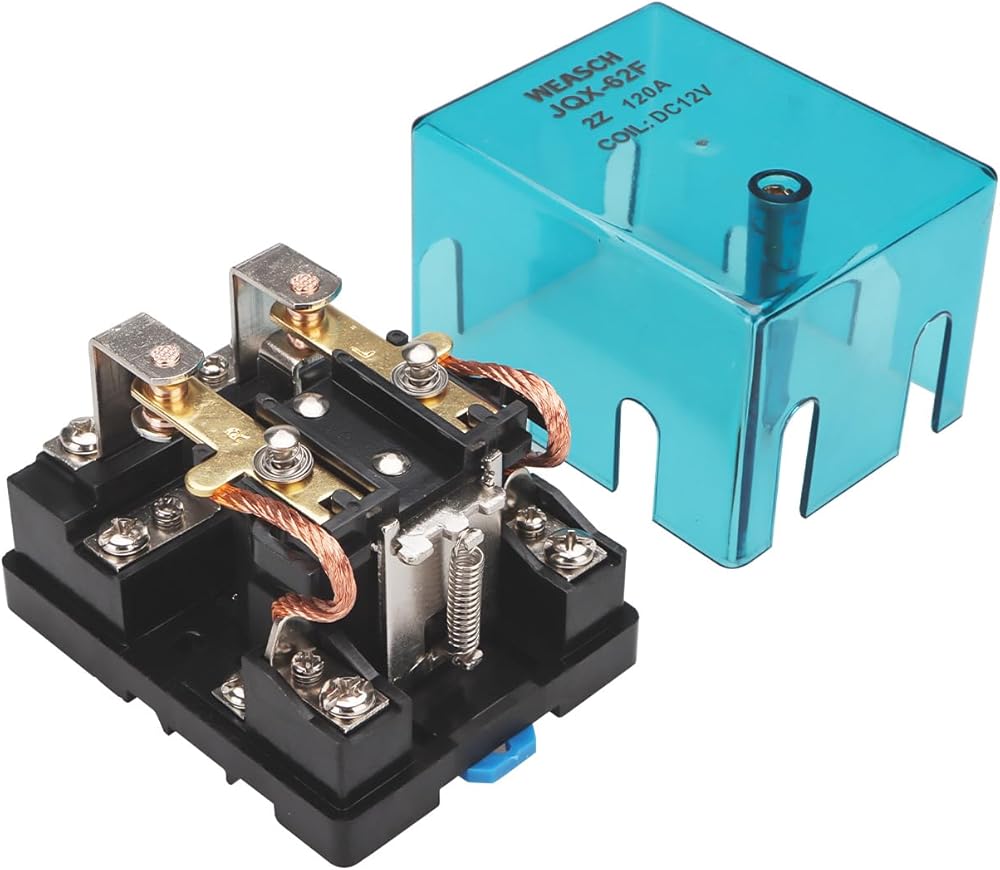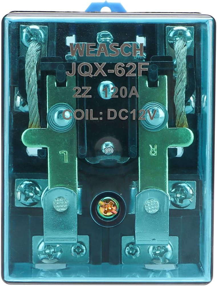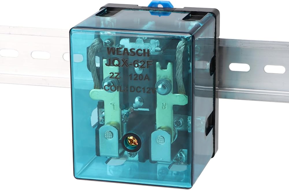 High Power Relay JQX-62F-2Z, Coil Voltage DC 12V 120A, DPDT 2NO 2NC, Electronmagnetic Relay, 35mm Rail Mount (DC 12V, 1)
