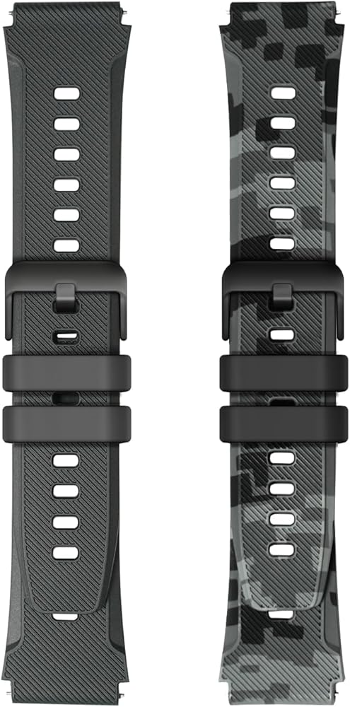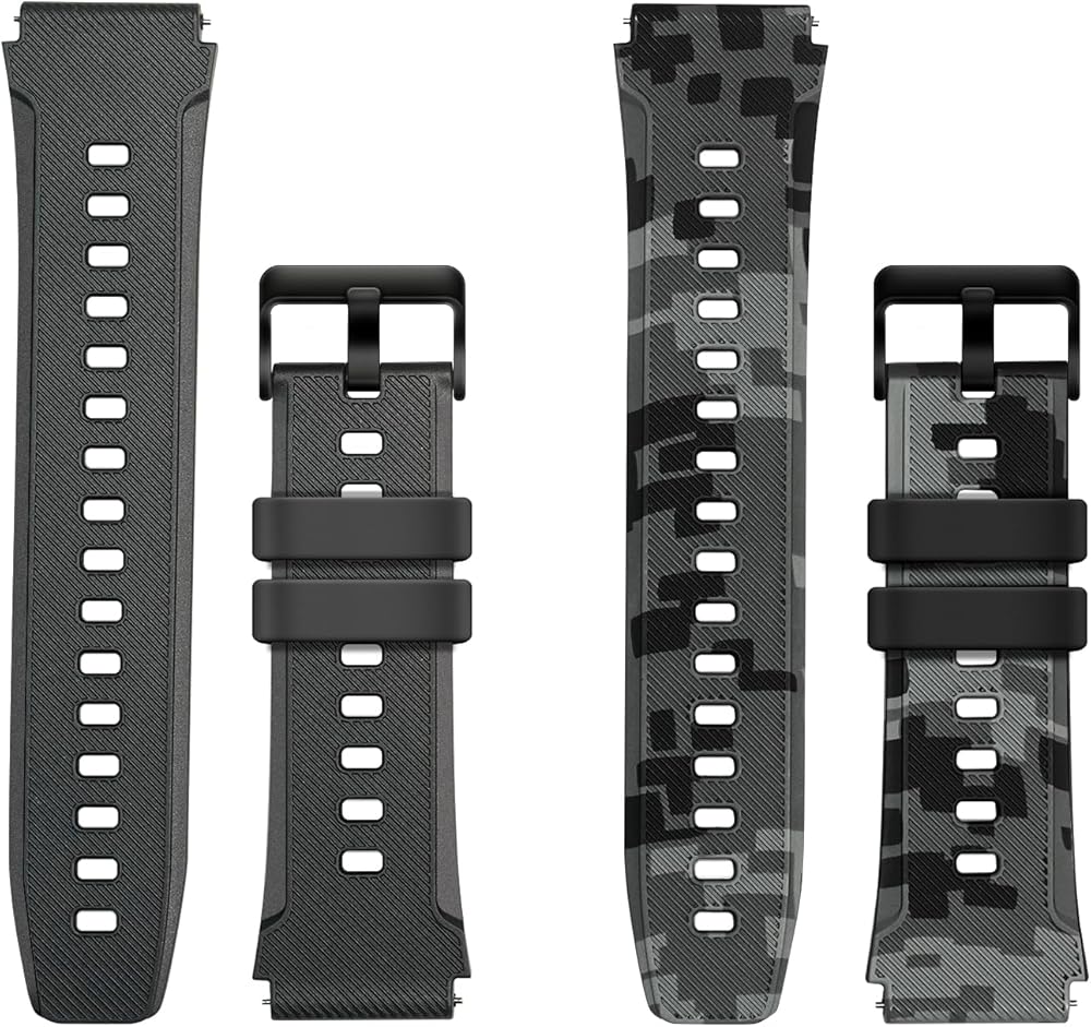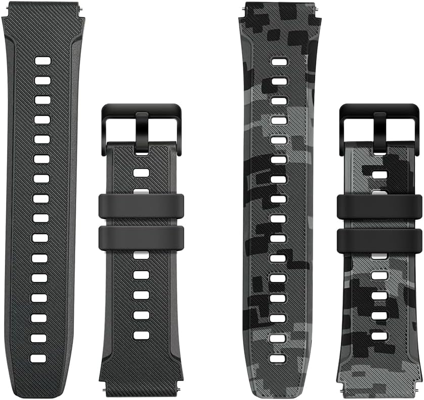 【Color and Size】2 colors: black smart watch band and camouflage smart watch band, Smart Watch Band width: 22mm/0.87in, band long end length: 125mm/4.92in, band short end length: 80mm/3.15in.