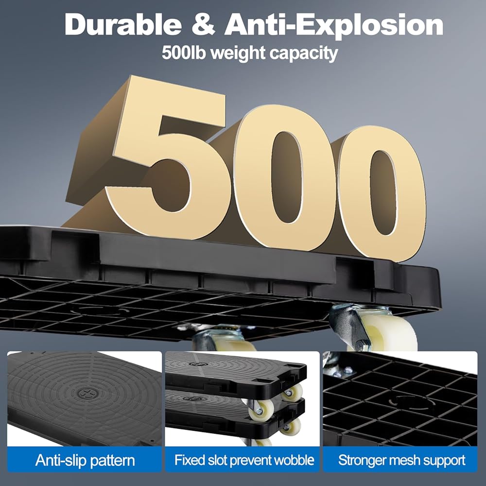 GROCERY CART WEIGHT BEARING: The appliance dolly has a mesh bottom that can carry at least 500 pounds. The non-slip pattern on the top of the luggage cart ensures stability when moving items such as refrigerators, wardrobes, washing machines, and sofas. This cart is a moving essential.
