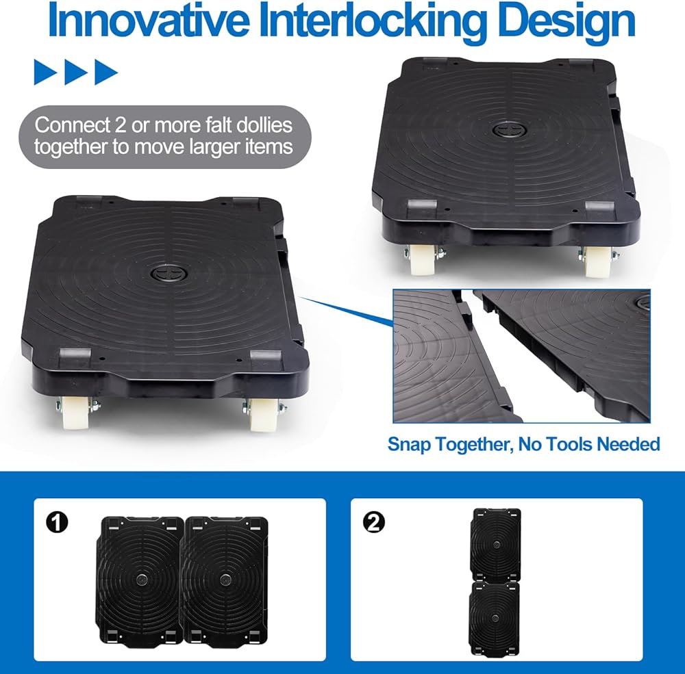 Moving Kit: The kit features two robust flatbed dollies and two sturdy securing ropes. Each appliance cart measures 16.5 x 15 x 3.15 inches, making them compact yet highly functional. When you connect them together, they increase in size to handle larger loads. Make the right move with OUNAN moving tools, and make your moving project easier and more efficient.