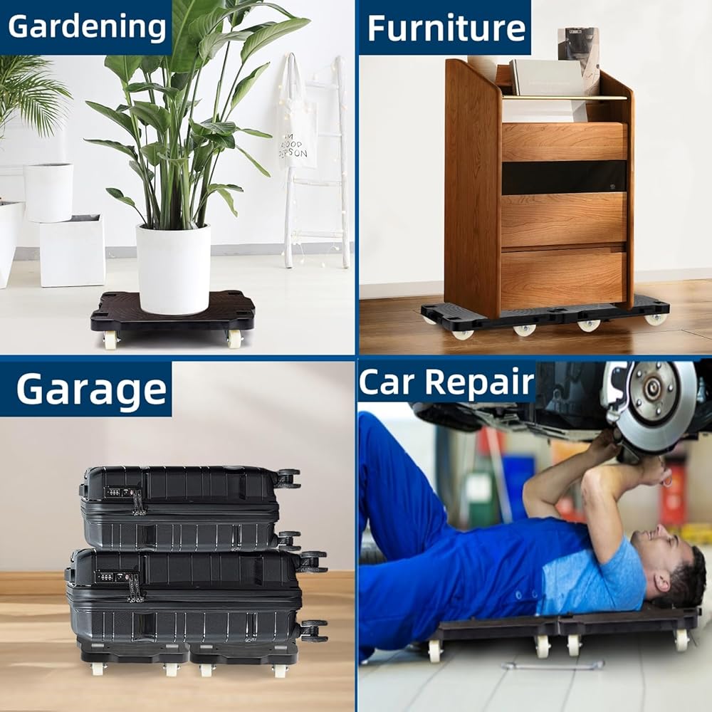 2 Packs Furniture Dolly Cart - Perfect Furniture Movers, Portable Trolley Cart with Wheels, Moving Dolly with 500lbs Capacity - Mini Hand Truck with 2 Ropes, Black