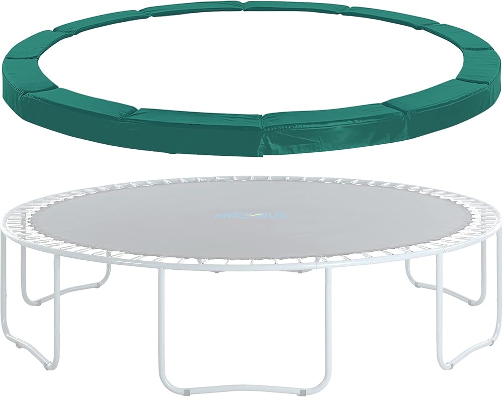 Size Info: Our trampoline spring cover is composed of 310g PVC on top, 130g PE on bottom and has 1/2" foam thickness EPE ensuring a safe and durable jumping experience for you. Comes with elastic straps and S-hooks for a tight grip on the trampoline frame