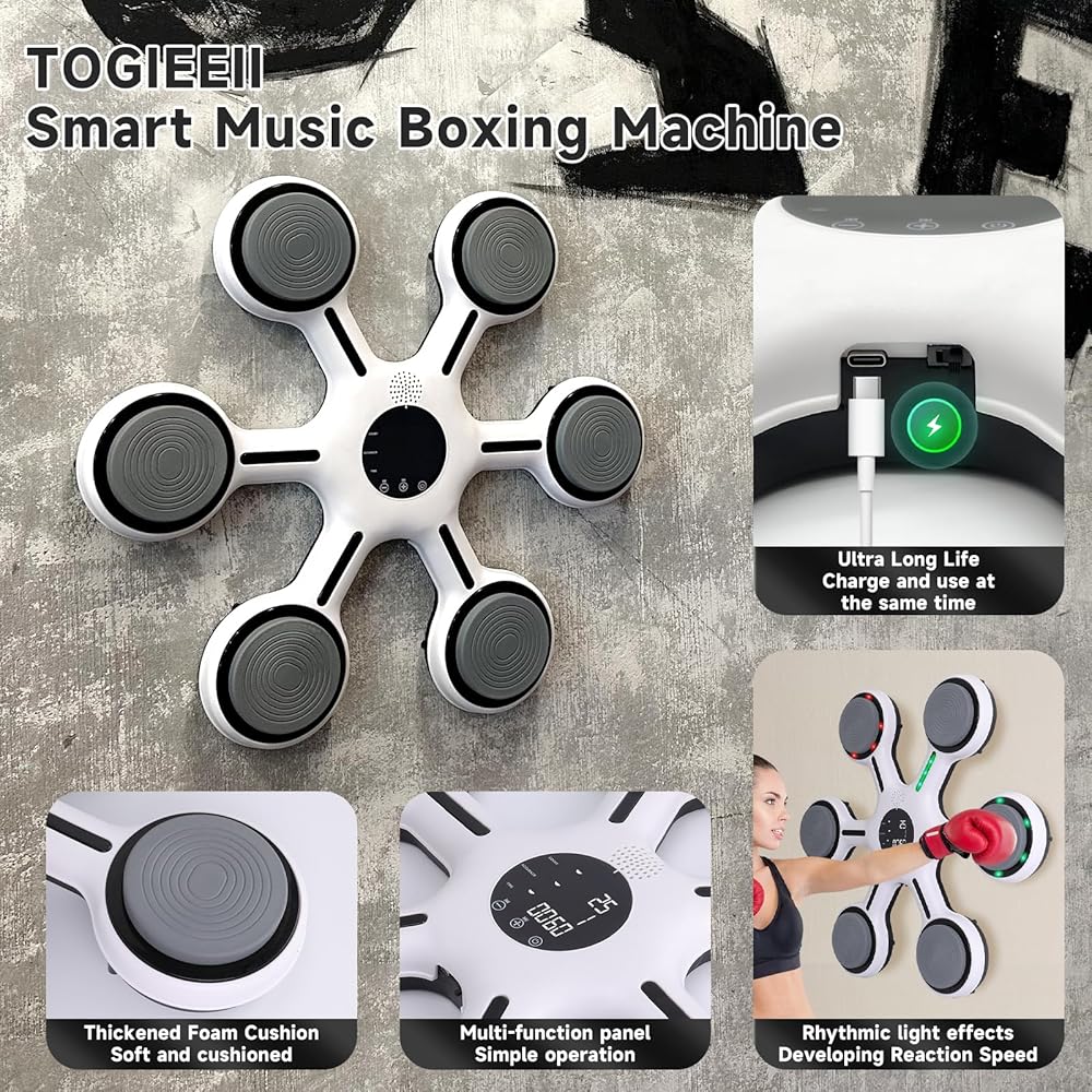 Togieeii Music Boxing Machine Boxing Machine Wall Mounted Music Smart Bluetooth Electronic Punching Equipment with Boxing Gloves Electronic Focus Agility Training Digital Boxing for Kids and Adults