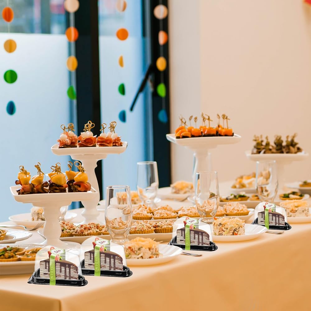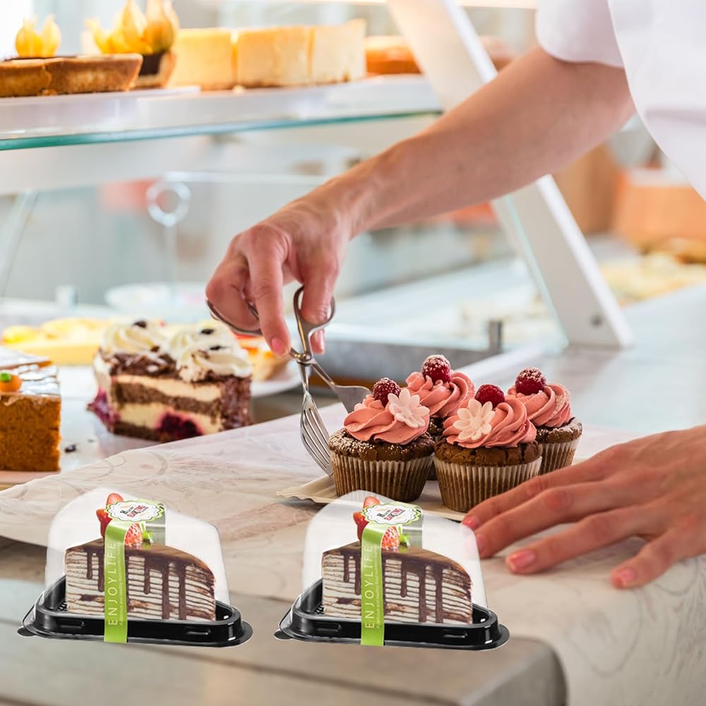 Wide Application: The cake slicing box can store all kinds of cakes and desserts as well as cookies, chocolates, breads, burgers, sandwiches and so on. Widely used in weddings, parties, celebrations, picnics all kinds of events as well as a must-have for bakeries, cafes, restaurants, food distribution business and other food selling places