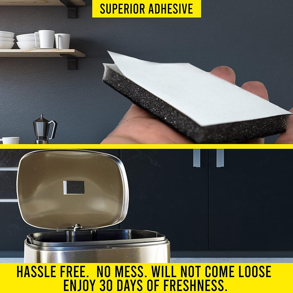 Long lasting odor prevention - 15 times more effective than charcoal bags and 20 times more effective than baking soda. Place on the lid of any trash receptacle with the attached strong self-adhesive sticker. Enjoy 30 days of odor-free bliss in your kitchen, bathroom, nursery, or garage.
