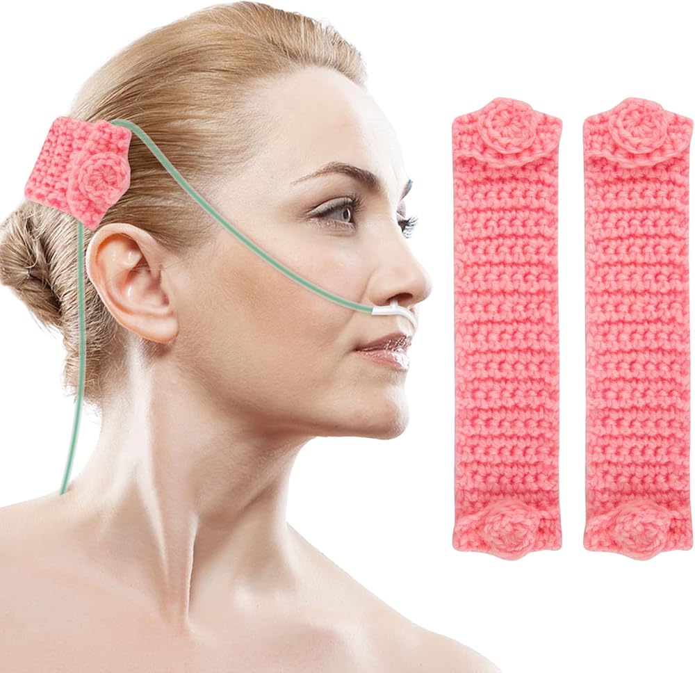 Unique Design: Our nasal cannula strap ear savers with the crocheted buttons to place the cannula tube, providing a comfortable distance from the ears. Say goodbye to ear pain and cheek indentations, as this headband offers unparalleled relief