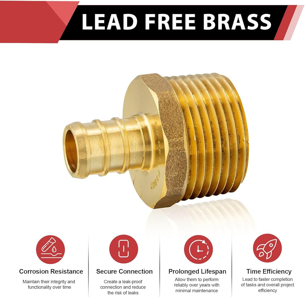 (Pack of 2) EFIELD Pex 3/4 Inch x 1 Inch NPT Male Adapter Brass Barb Crimp Fittings, ASTM F1807