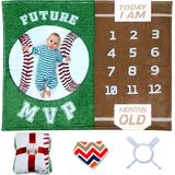 Simple to use. Handling a baby is hard, his blanket shouldn't be. We made it pretty easy to use and highlight your baby's month. Simply spread your sports baby blanket, place your baby, and click away