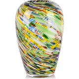 Spectacular Range of Colors: This exquisite hand blown glass vase is a showcase of vibrant colors, including notable colored hues that make it an ideal colored glass vase for any decor. Its Murano-inspired craftsmanship mirrors the complex beauty of stained glass, enhancing any room with its colorful presence.