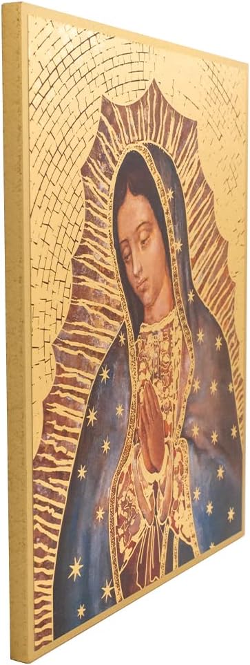 Religious Wall Art,Beautiful Plaques with Gold-Tone Mosaic Pattern Backgrounds,Christian Home Decoration, First Holy Communion, and Confirmation (Our Lady of Guadalupe)
