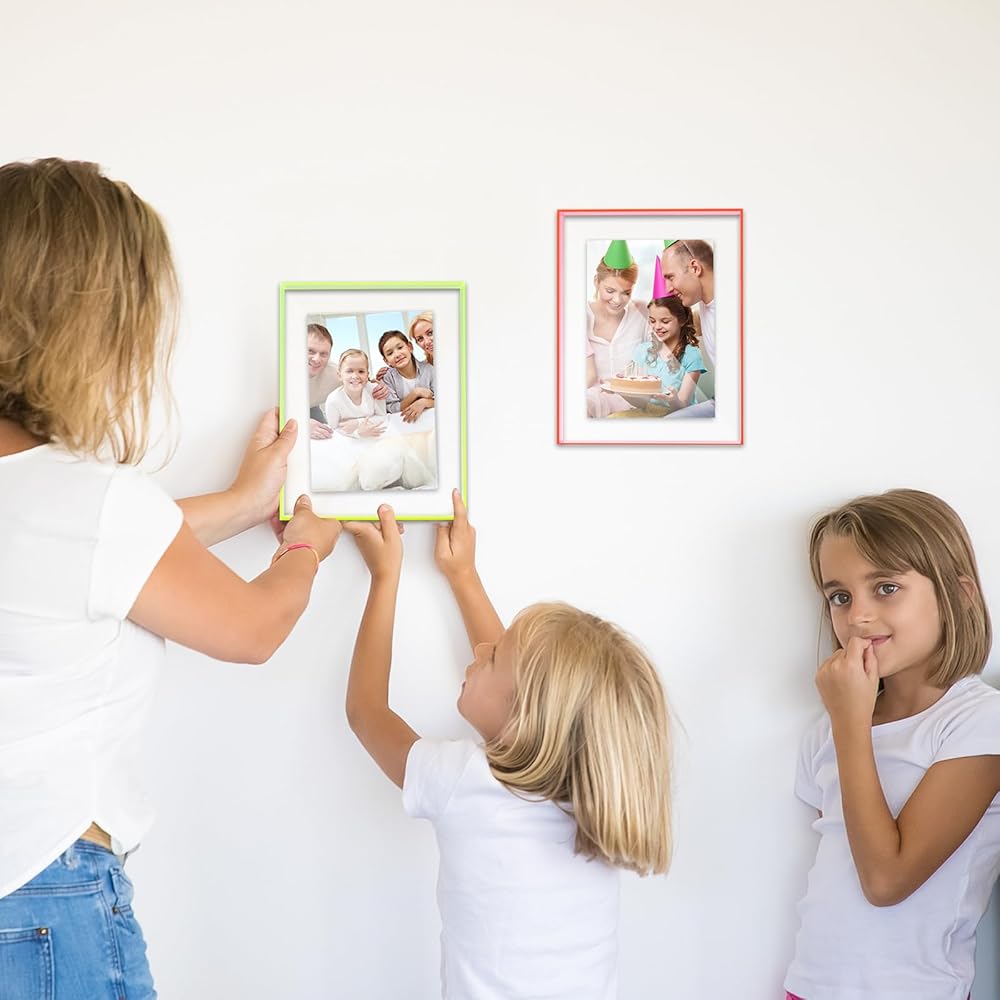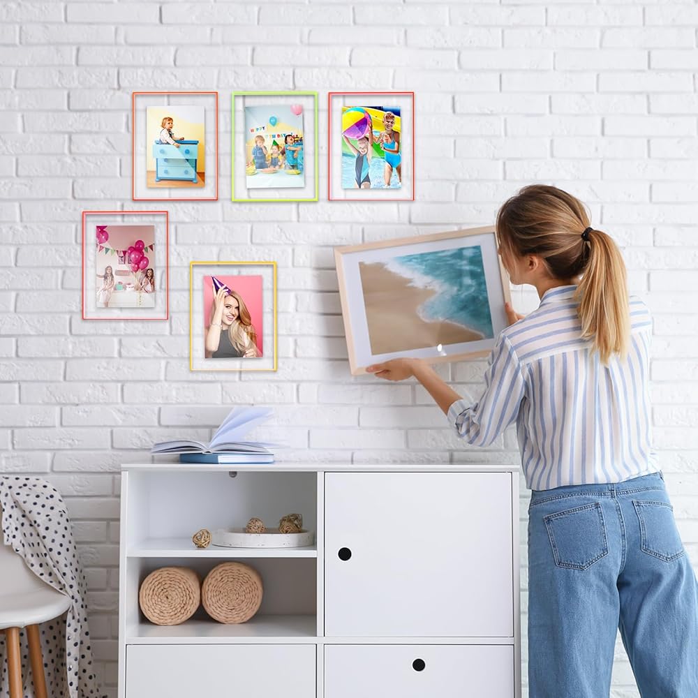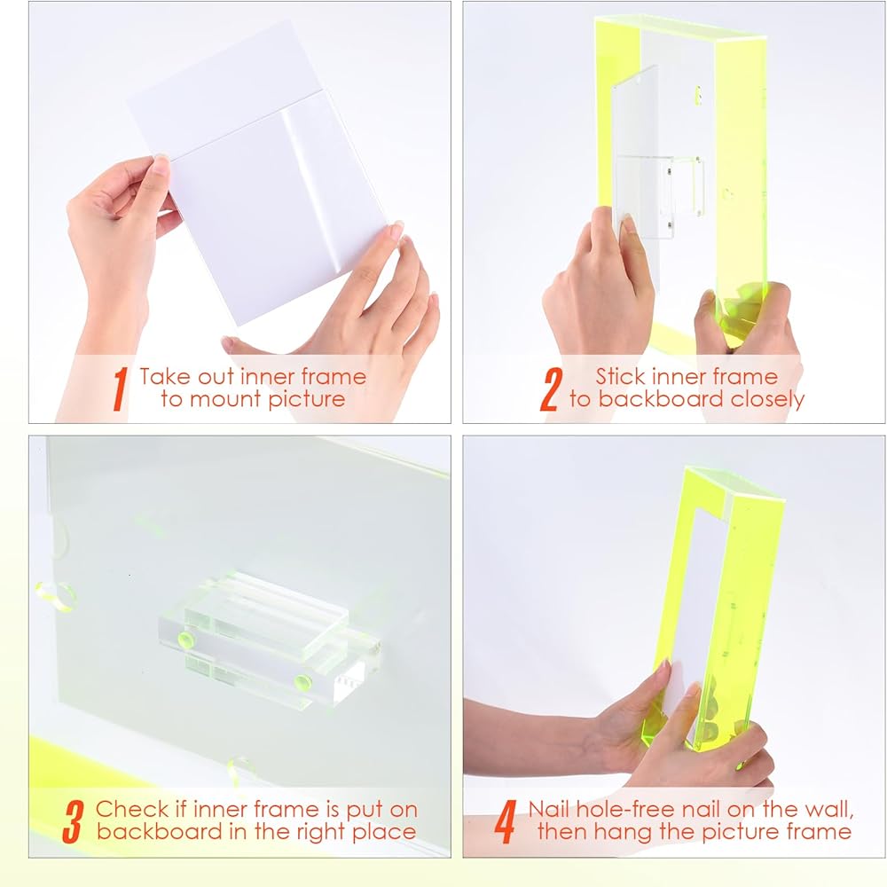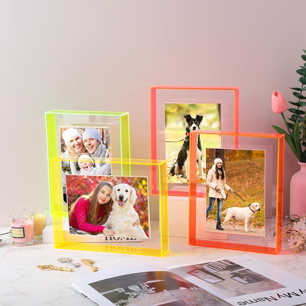 Package Contains: you will receive 4 pieces of acrylic hanging frames in different colors of fluorescent pink, purple, yellow, orange, meeting your needs for different color requirements of desktop photo frames, and the photo frame can store photos with a size of 5 x 7 inches
