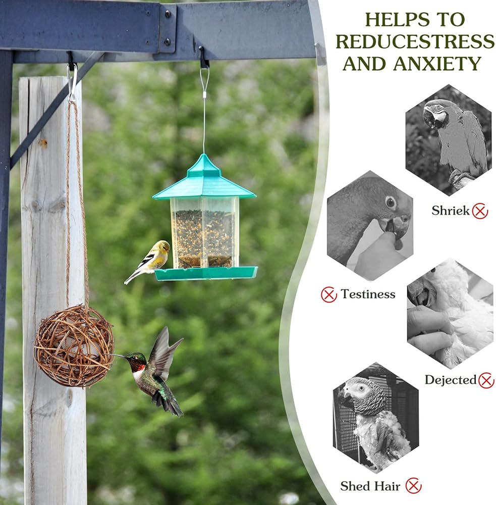 Provide comfortable and healthy nesting material for outdoor wild birds. The hummingbird houses are full of building materials, so you can enjoy the birds nesting. After the filling in the ball is used up, new nesting materials can be added from the gap.