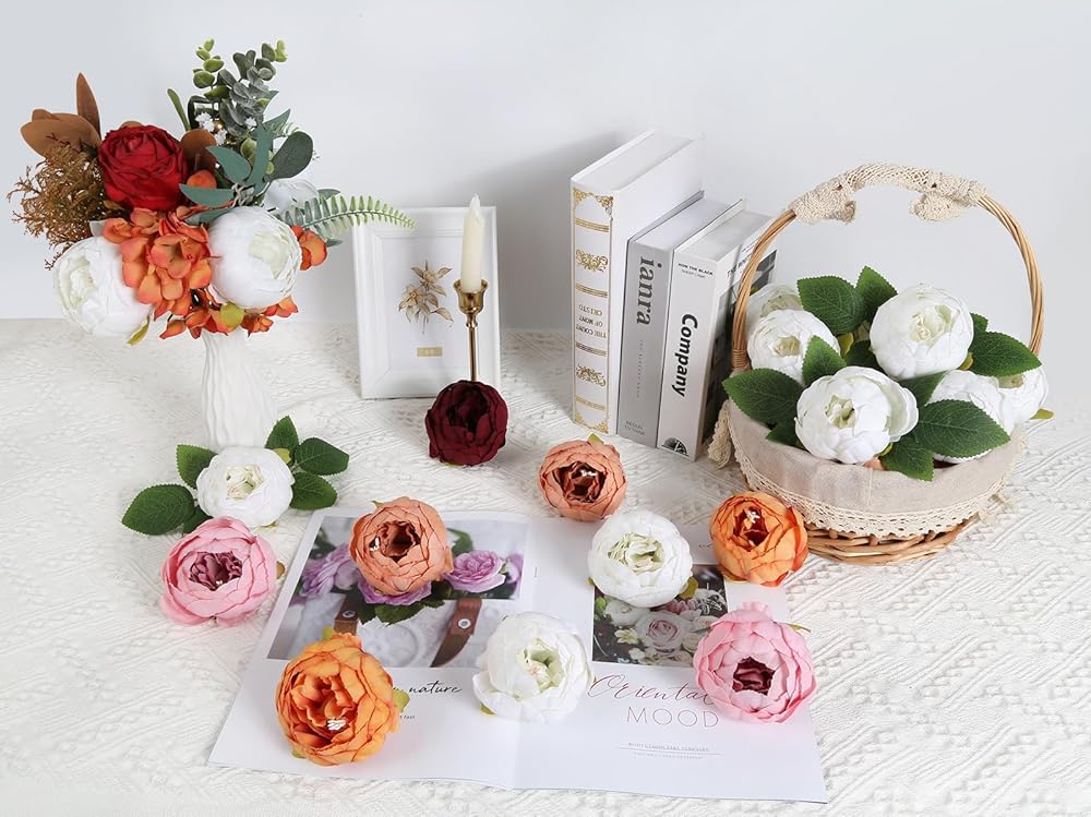 These peonies are made of high quality soft silk, which makes it look real, feel soft and comfortable. Adjustable stems can be easily bent as you need.