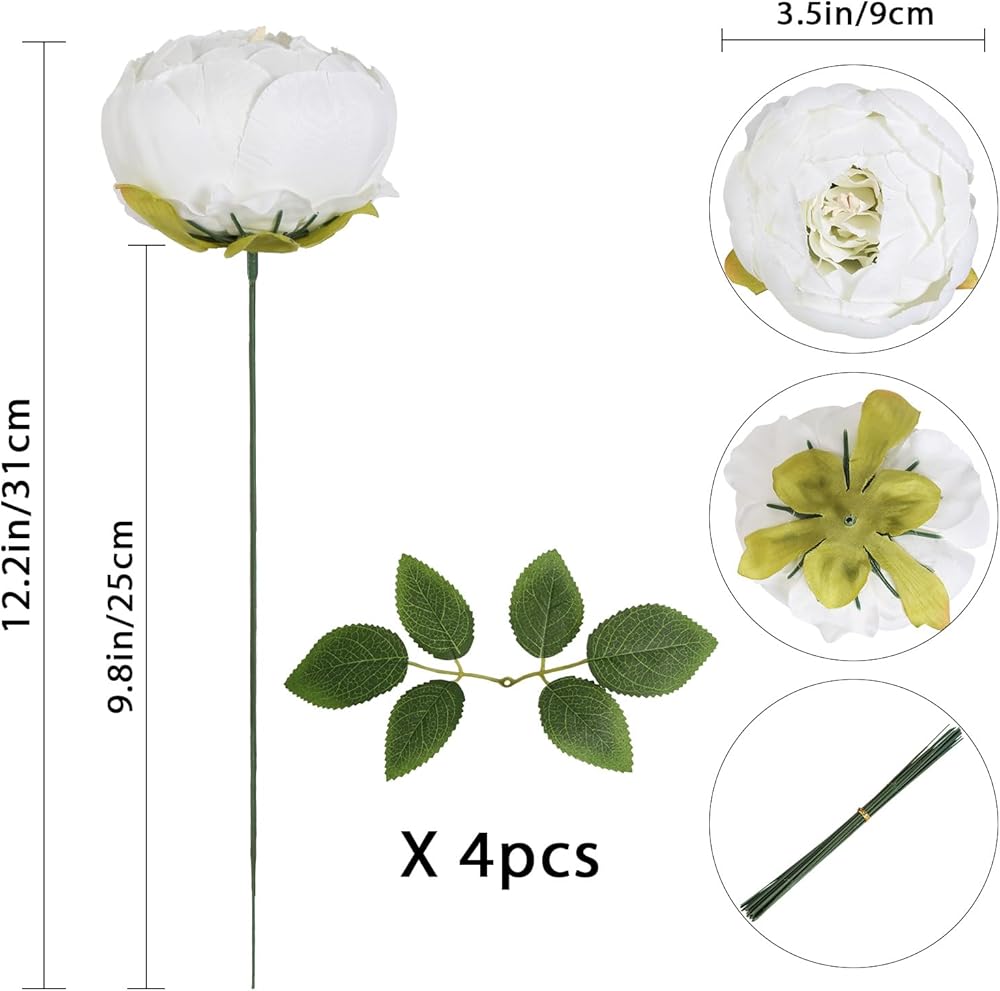 Size: peony head: approx. 3.5in/9cm in diameter; stem: 9.8 in/25cm in height