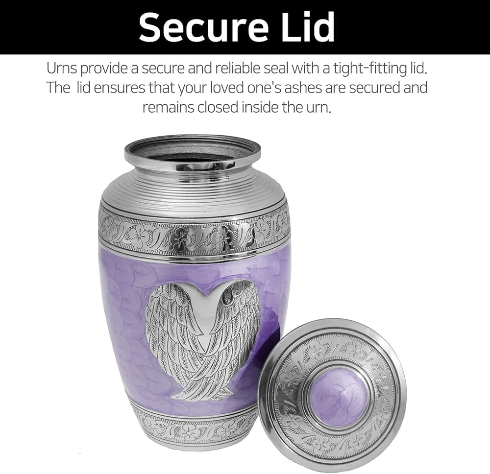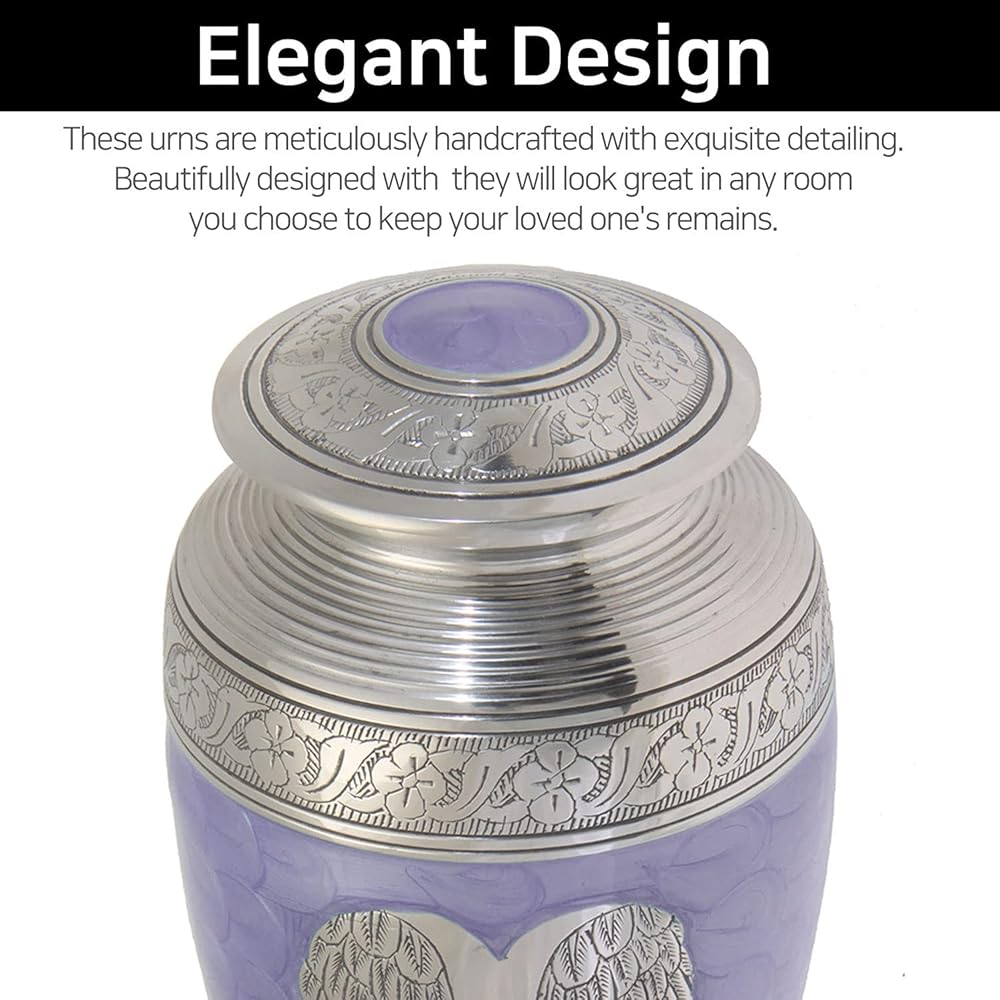 LETUSTO Cremation Urn for Human Ashes for Adults, Funeral Burial Handcrafted Decorative Urns with Velvet Bag for Easy Preservation and Portability (Angel Wing-Purple)