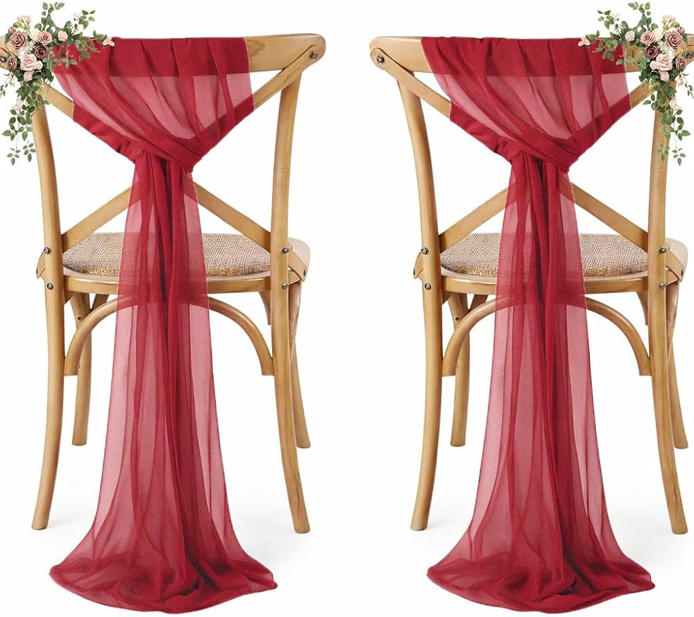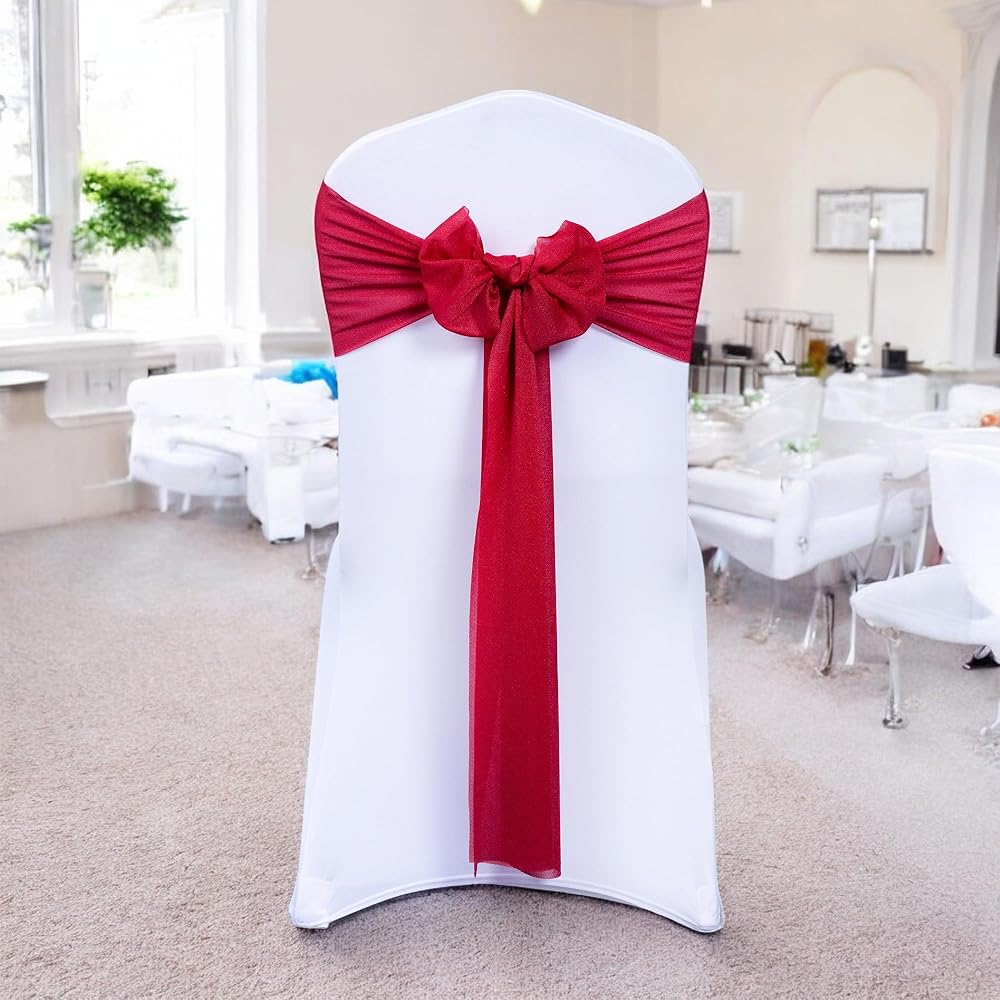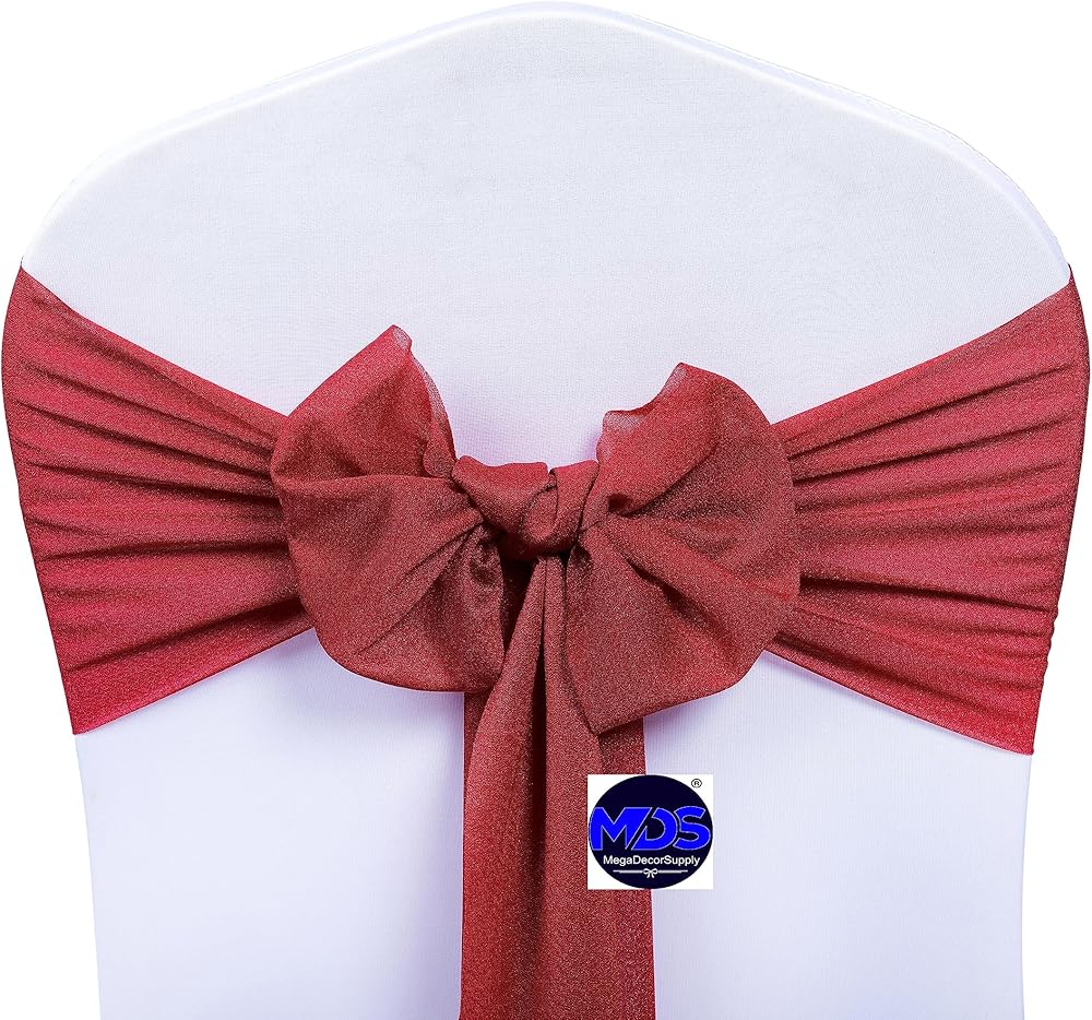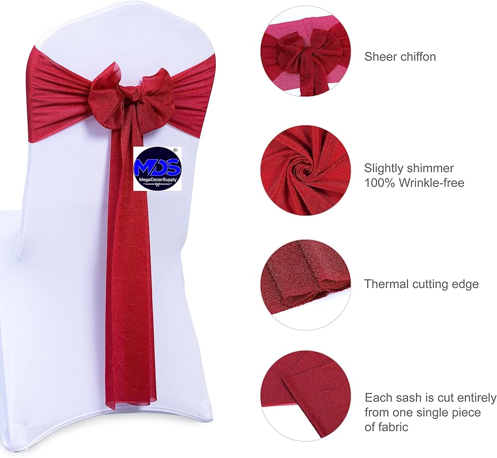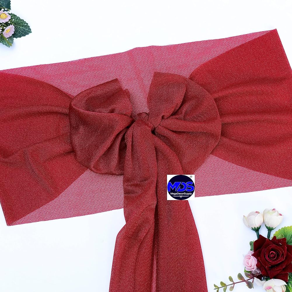 MDS Pack of 10 Chiffon Chair Sashes Bows for Wedding Events Supplies, Decorations for Birthday Parties, Graduations, Engagements, Chair Sashes fits Banquet Chair Cover Tie Back Band - Apple red