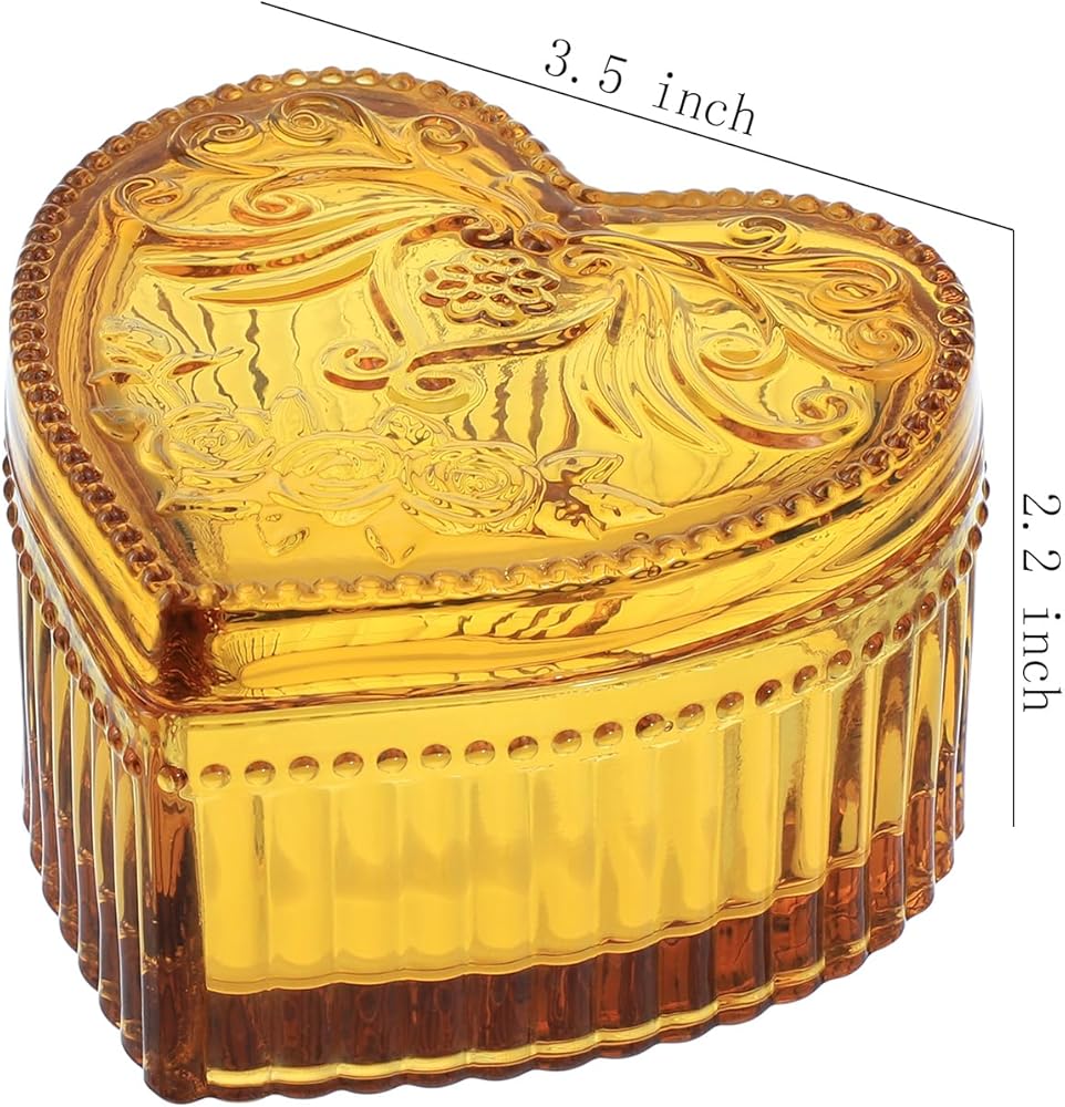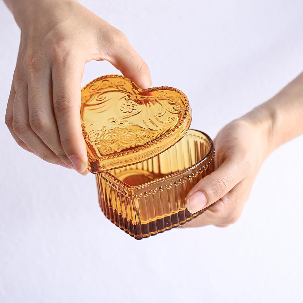 SOCOSY Heart-Shaped Rose Embossed Jewelry Box, Glass Candy Box with Lid, Womens Necklace Earrings Brooch Storage Box