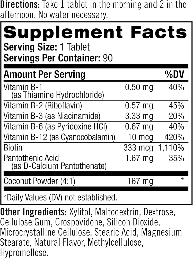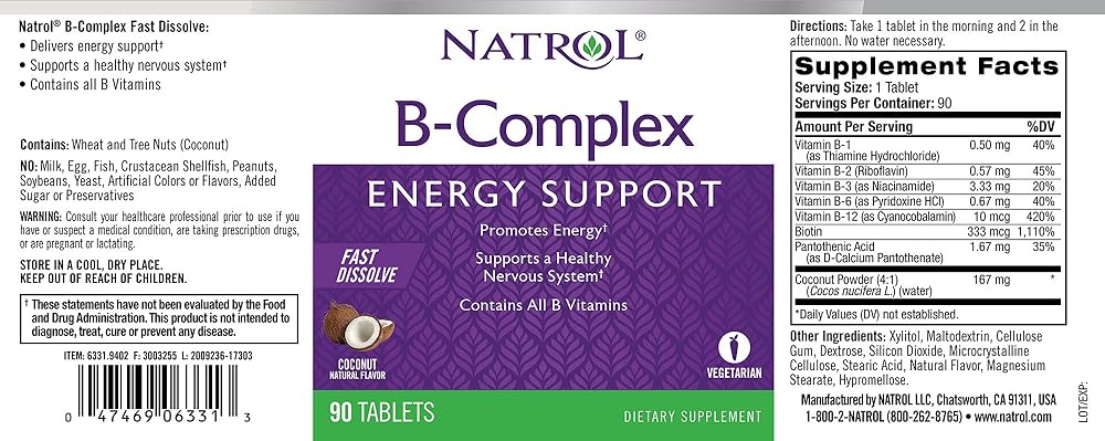 Natrol B-Complex contains biotin and multiple B vitamins that help support a healthy nervous system. One of the leading ingredients in our B-complex fast dissolving tablets is biotin, an important nutrient not only for hair, skin and nails but also to help convert food into energy.* Natrol B-Complex contains all B vitamins, helping to support energy throughout the day. Our B vitamins also function as cofactors for enzymes essential to healthy cell function.*