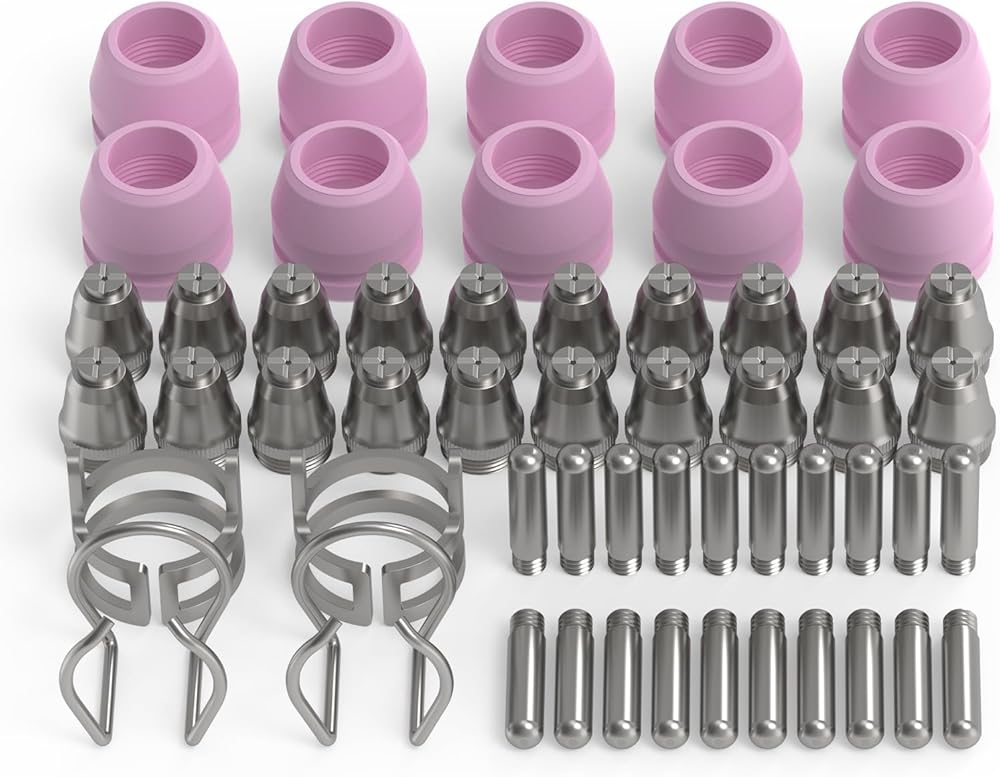 YESWELDER 54PCS AG-60 Plasma Cutter Torch Consumables Kit(Standard)/ 20 x .040'' Nozzles 20 x Electrodes 10 x Cups 4 x Brackets, Suitable for YESWELDER CUT-55DS/CUT-55HF/CUT-55DS PLUS Plasma cutter