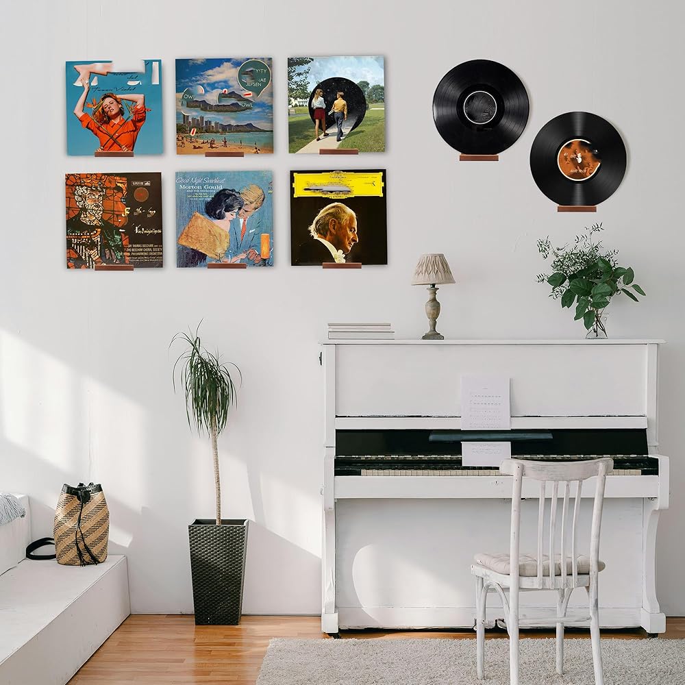 KEJJNYER 10 Pack Wood Vinyl Record Wall Mount, 4in Wood Record Holder Wall Mount Vinyl Album Holder Display Record Holder Floating Shelves Decorative