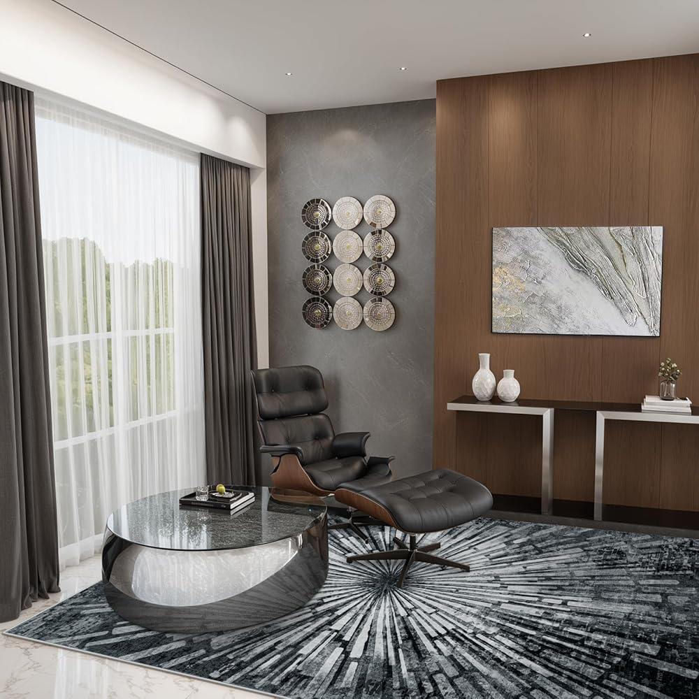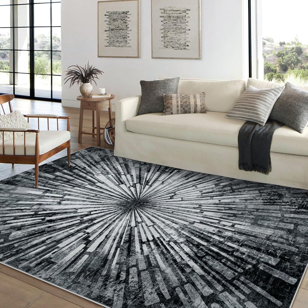 【Feel The Art】: Spice up your space with our Lahome stylish rugs. The black rug for living room 5x7 features a black and white sun-ray splash pattern. Brighten your room with colourful art, and enhance the ambience of your space