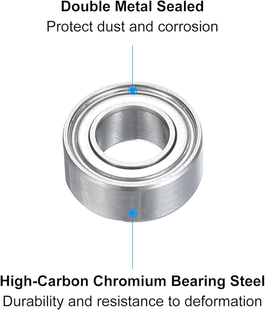 DOUBLE METAL SEALED: Two metal shields on either side protect the deep groove ball bearings from dust and corrosion, which would extend usage time and reduce maintenance frequency.