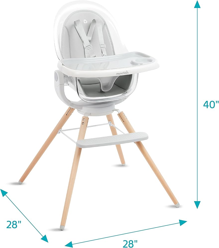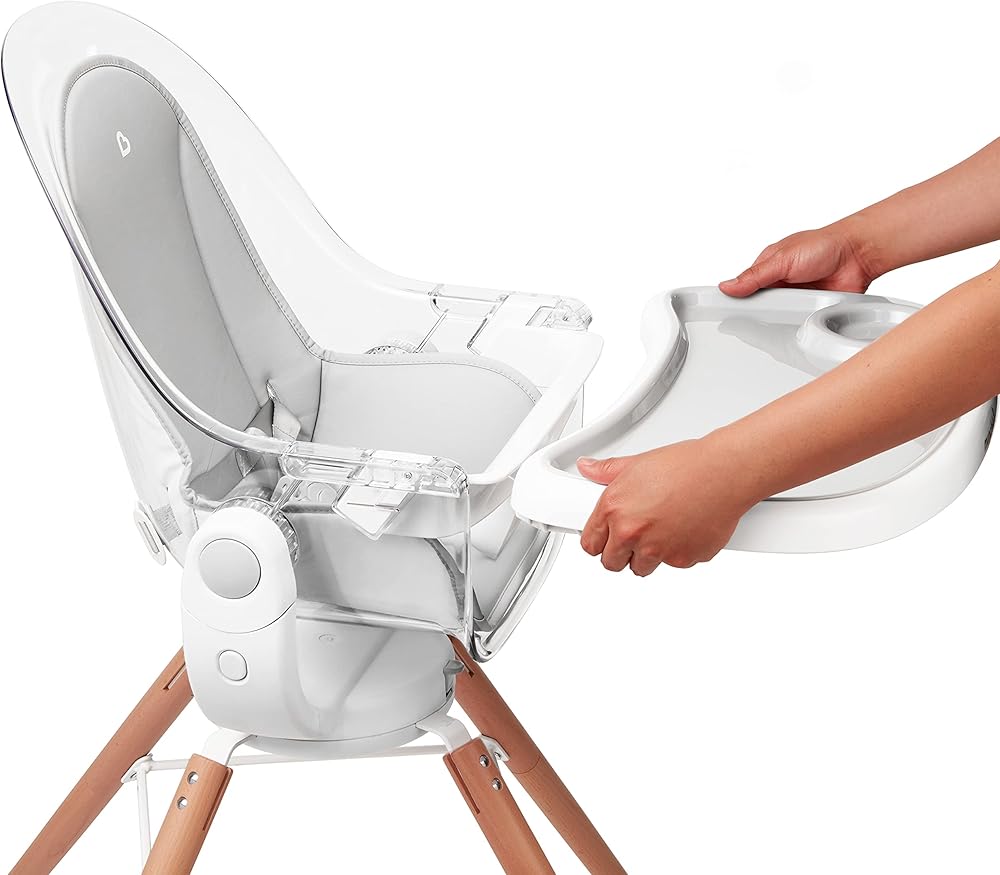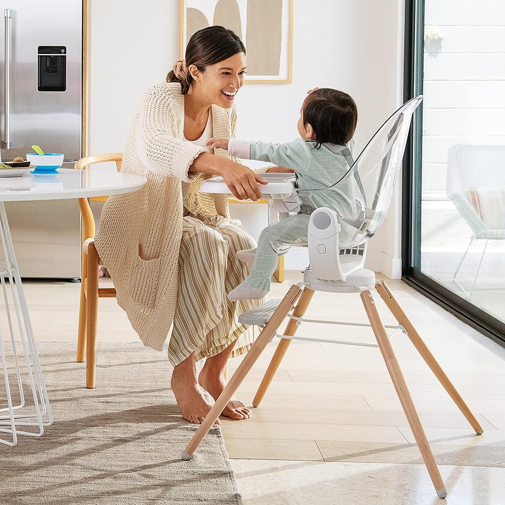 Your little one is about to dine on cloud 9! The sleek 360° Cloud Swivel High Chair elevates mealtime with function and style. Easy to clean, easy to assemble, and easy on the eyes, this stylish high chair is also easy to love thanks to its superior safety features. A five-point harness system keeps baby secure while the unique swiveling design moves with you and makes feeding solids a breeze. From the clear ergonomic seat and removable cushion to the chic wooden legs and dishwasher-safe tray, the 360° Cloud is a breath of fresh air when it comes to baby gear. And with its modern, neutral aesthetic, it's the rare kind of baby equipment that blends seamlessly with your decor. Talk about drool-worthy (in more ways than one!).