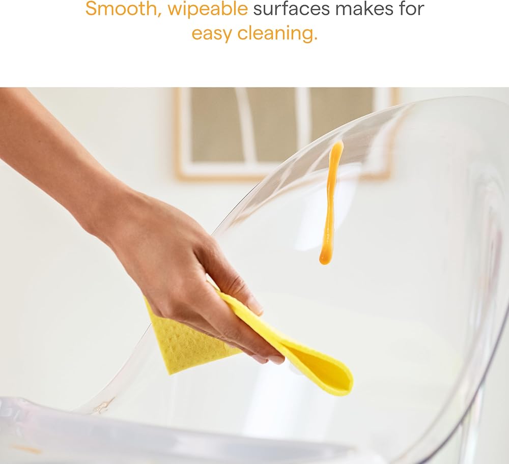 EASY TO CLEAN – smooth, easily wipeable surfaces are free of nooks and crannies to minimize mealtime messes and spills