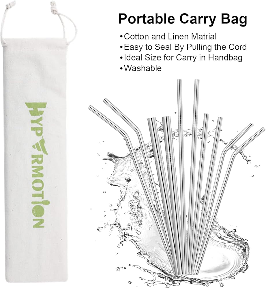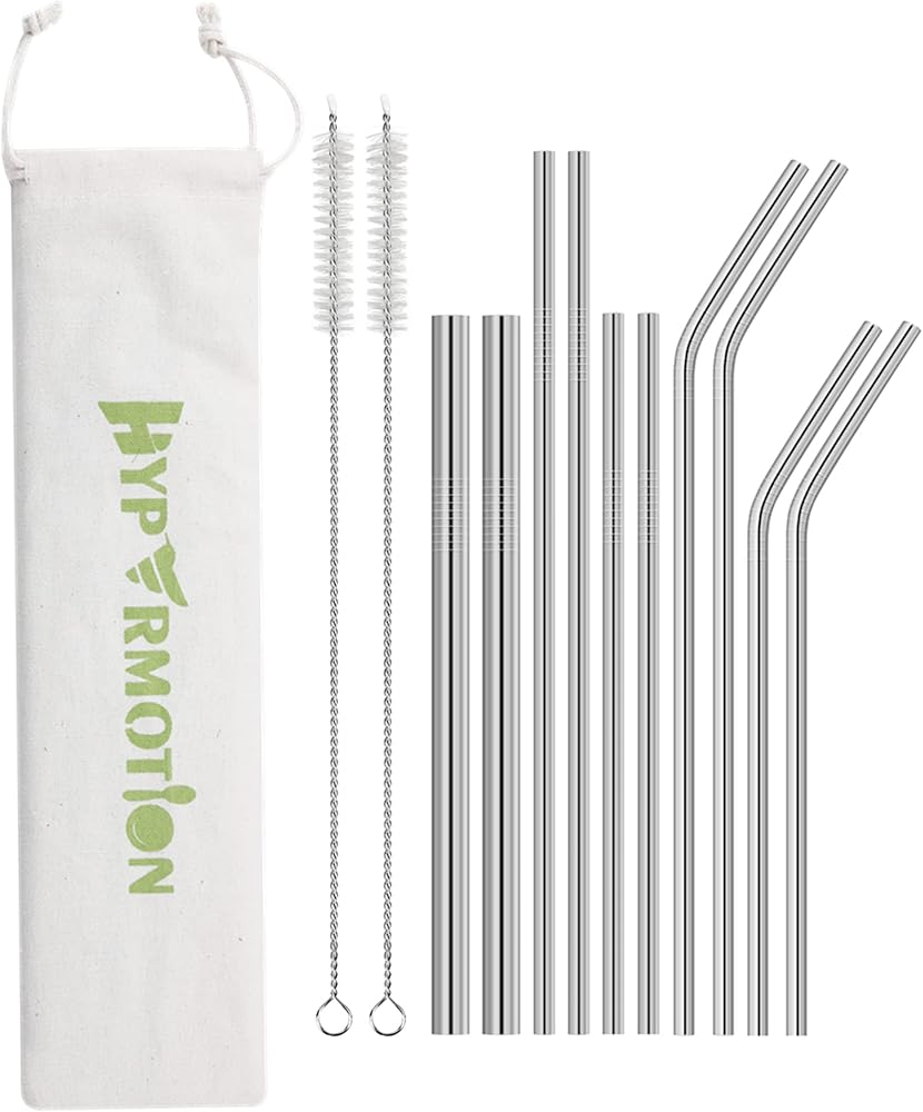 Hypermotion Stainless Steel Straw, Food Grade Reusable Metal Drinking Straw Set with 2 Cleaning Brushes and Carry Pouch for Smoothie, Milkshake, Cocktail and Hot Drinks