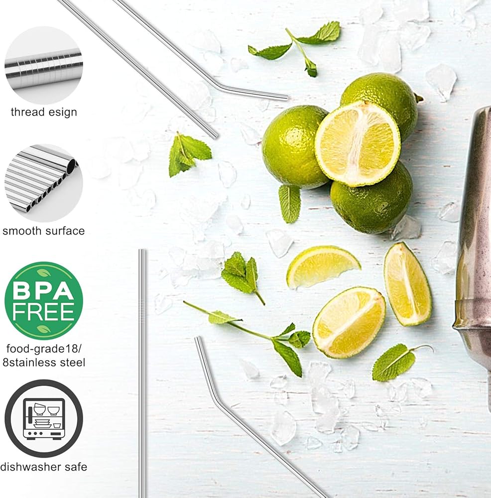 【Premium Material】 Our metal drinking straws are constructed with food grade stainless steel, which is BPA Free and safe to use, no metallic taste, rustproof and scratch-resistant; also more reusable than plastic or paper straws as it reduce plastic waste.
